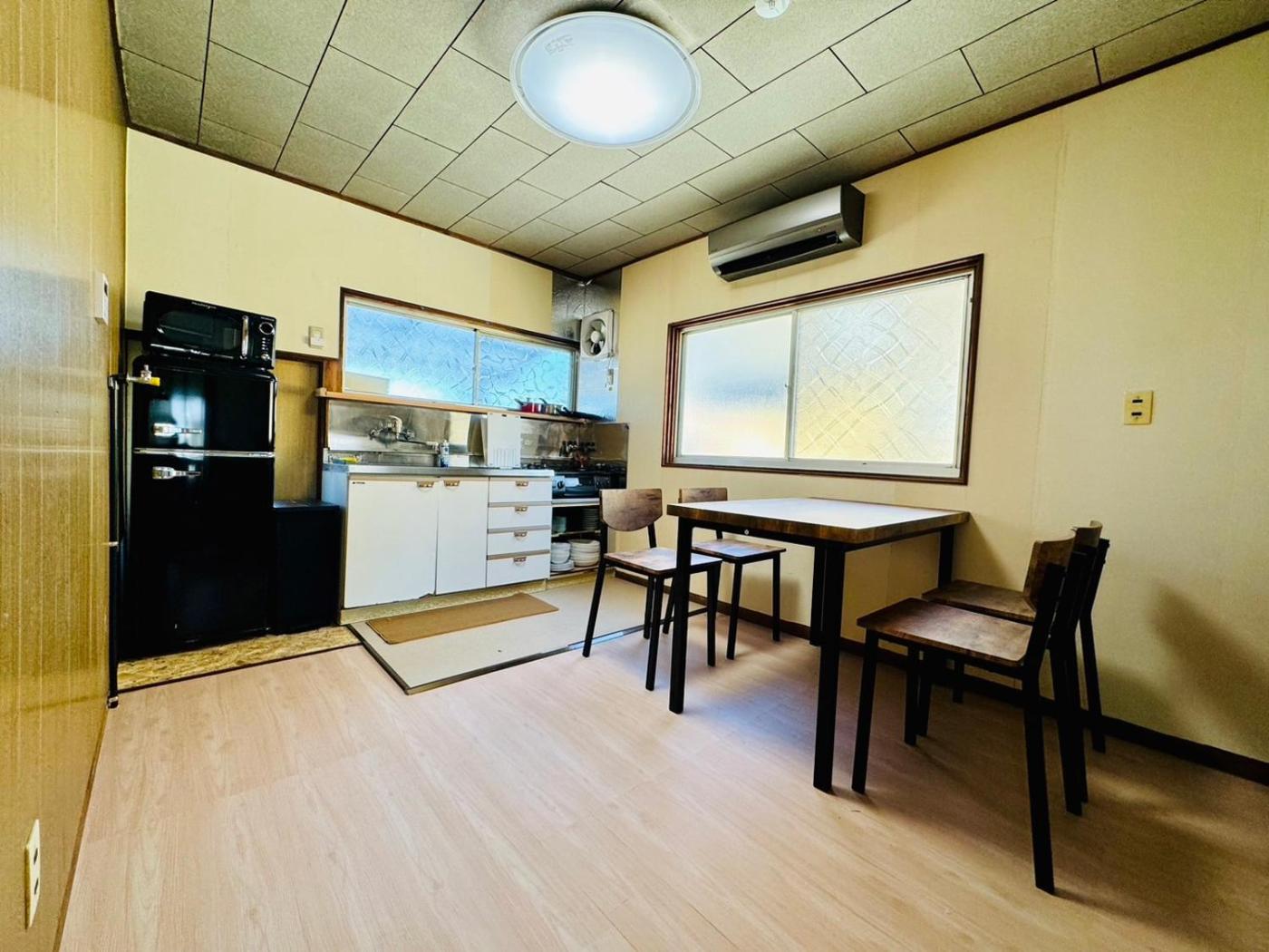 Three-Bedroom House. Featuring a private entrance, this air-conditioned holiday home consists of 1 living room, 3 separate bedrooms and 1 bathroom with a bath and a hairdryer. The holiday homes kitchen, which has a refrigerator and a microwave, is available for cooking and storing food. The holiday home features tatami floors, a seating area with a flat-screen TV, a washing machine, a dining area, as well as an electric kettle. The unit offers 3 beds and 4 futons.