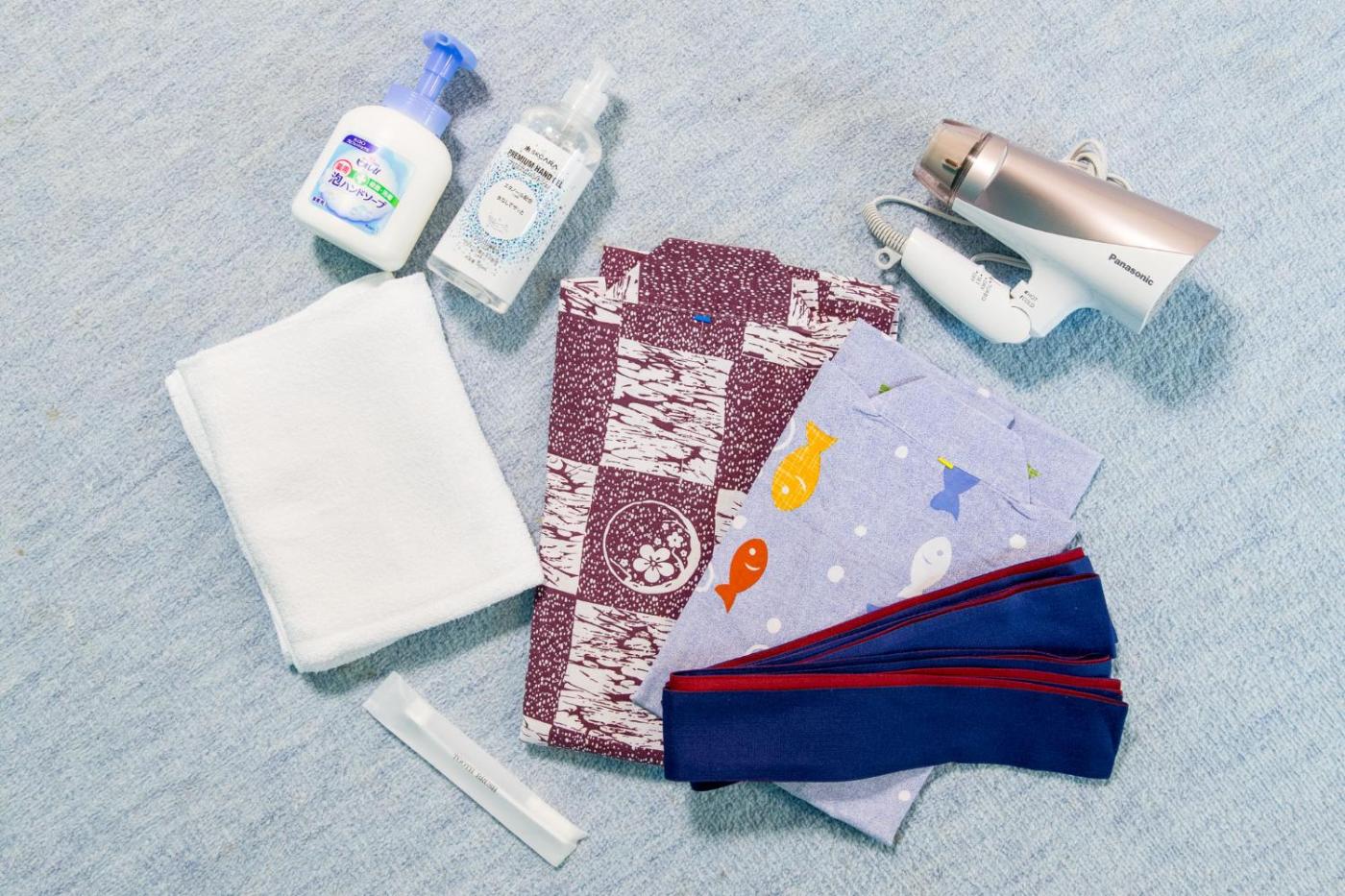 Quadruple Room with Tatami Area. Each air-conditioned room includes an LCD TV, an electric kettle and a fridge. The en suite bathroom has a spacious bathing area with a bathtub and shower, and slippers are provided. Guests sleep in Japanese-style futon bedding on an elevated frame. Bath towels can be rented. Please note the rooms dont come with an ocean view. ;