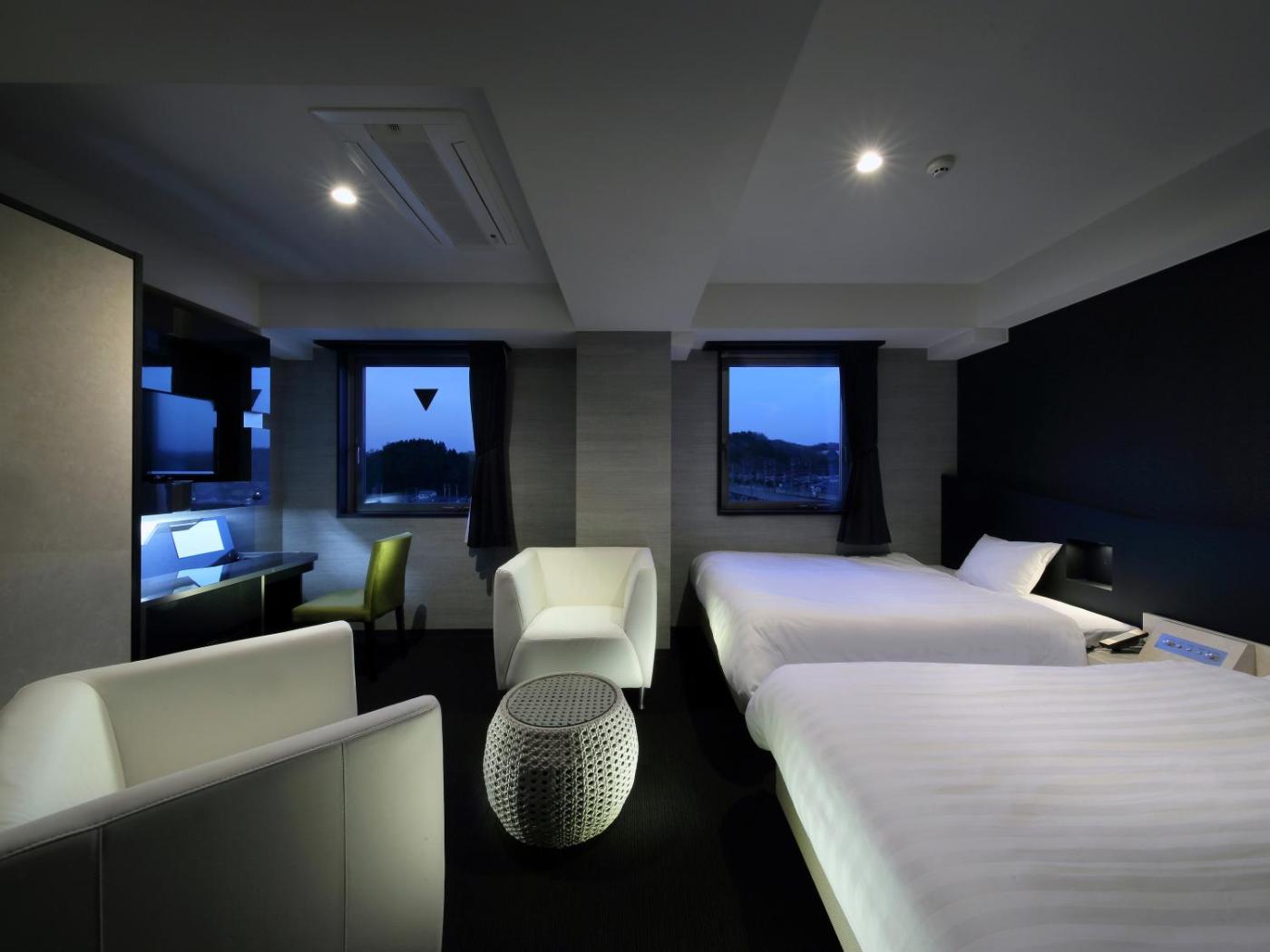 Twin Room - Disability Access. Providing free toiletries and bathrobes, this twin room includes a private bathroom with a bath, a shower and a bidet. The air-conditioned twin room provides a flat-screen TV, soundproof walls, a wardrobe, a safe deposit box as well as city views. The unit offers 2 beds. ;
