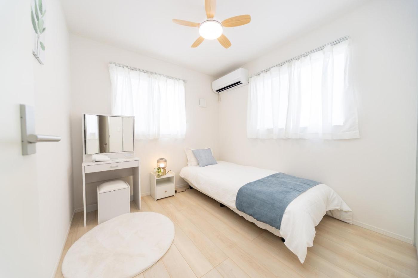 Four-Bedroom House. Guests will have a special experience as the holiday home offers a hot tub. Featuring a private entrance, this air-conditioned holiday home consists of 1 living room, 2 separate bedrooms and 1 bathroom with a bath and a shower. Guests can make meals in the kitchen that is equipped with a refrigerator, kitchenware, a microwave and an electric kettle. Boasting a terrace, this holiday home also provides a washing machine, tatami and a flat-screen TV. The unit offers 5 beds.
