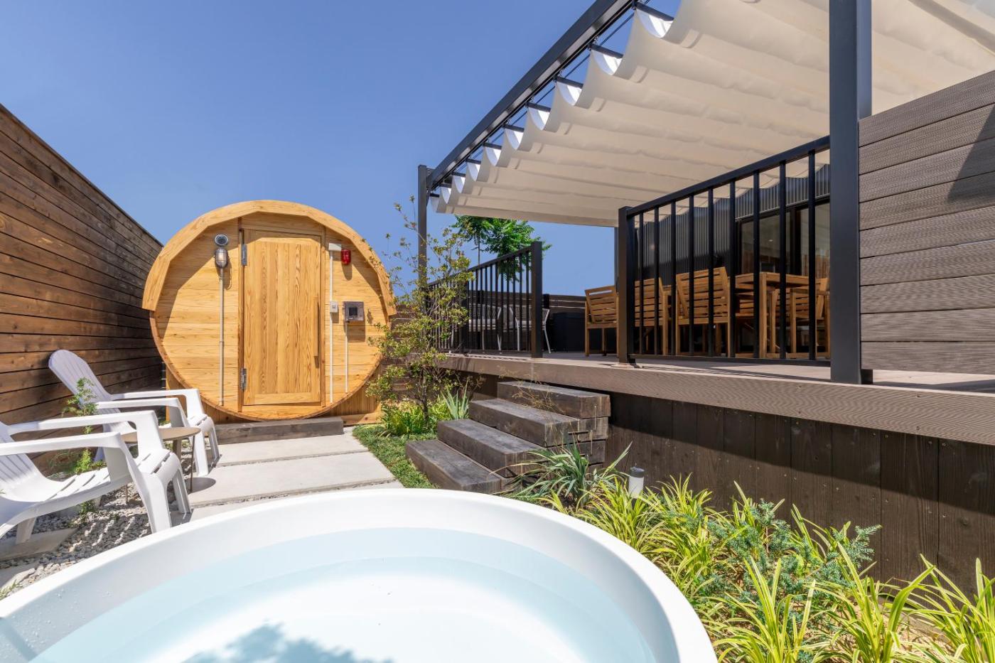 Two-Bedroom Apartment. The sauna is a top feature of this apartment. This apartment includes 1 living room, 2 separate bedrooms and 1 bathroom with a shower and free toiletries. Guests will find a refrigerator and a microwave in the kitchenette. The apartment also features a barbecue. The apartment offers air conditioning, a washing machine, as well as a terrace and an outdoor dining area. The unit has 3 beds and 3 futons.