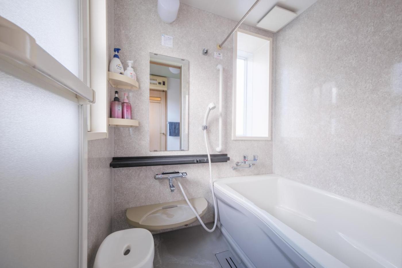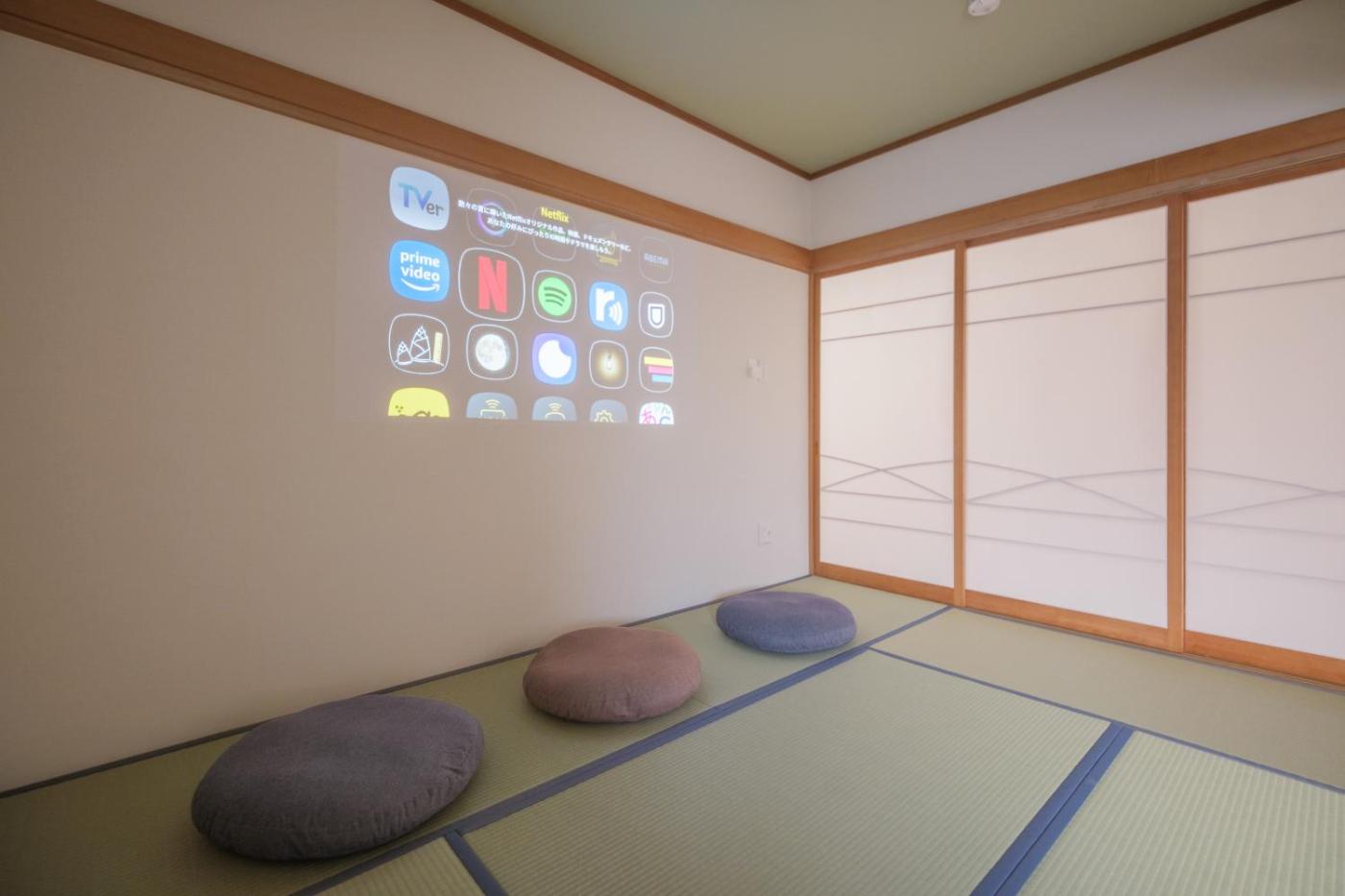 Two-Bedroom Apartment. This spacious apartment consists of 2 bedrooms, kitchen, a terrace and 1 bathroom with a bath. Guests can make meals in the kitchen that is equipped with a stovetop, a refrigerator, kitchenware and a microwave. This apartment is air-conditioned and features a TV, a washing machine, tatami and a dining area. The unit offers 3 beds and 6 futons.