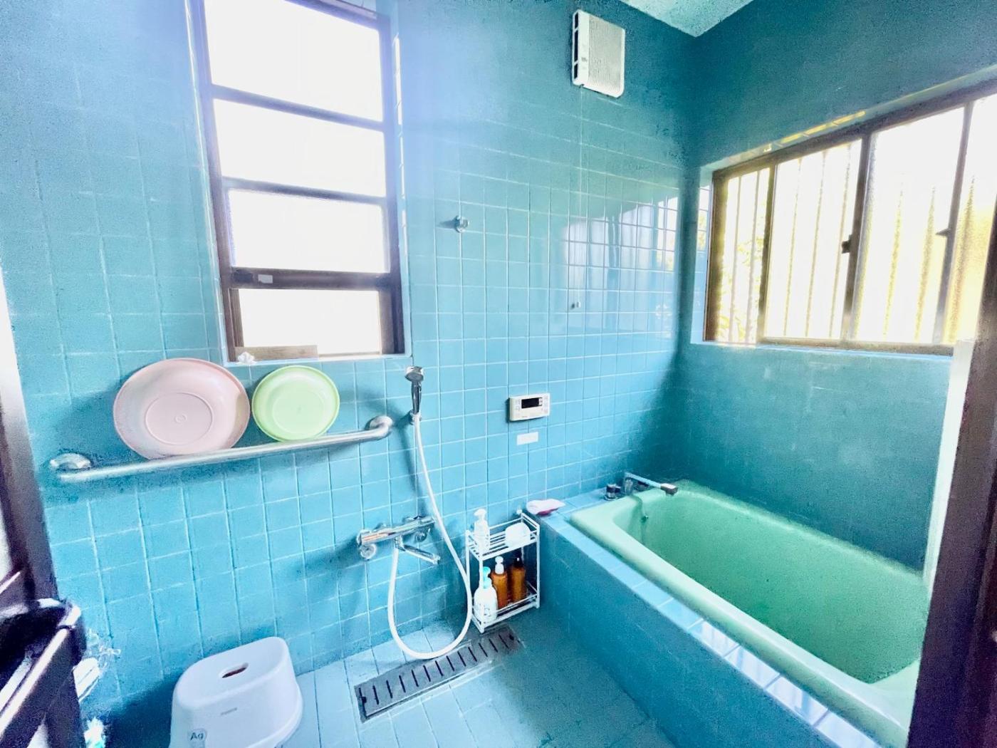 Three-Bedroom House. This holiday home features a hot tub. Boasting a private entrance, this air-conditioned holiday home features a kitchen, 3 bedrooms and 1 bathroom with a bath and a shower. Guests will find a refrigerator, a microwave, a toaster and an electric kettle in the kitchen. The holiday home also comes with a barbecue. The holiday home has a washing machine, tatami, a dining area as well as a terrace with garden views. The unit has 1 bed and 5 futons.