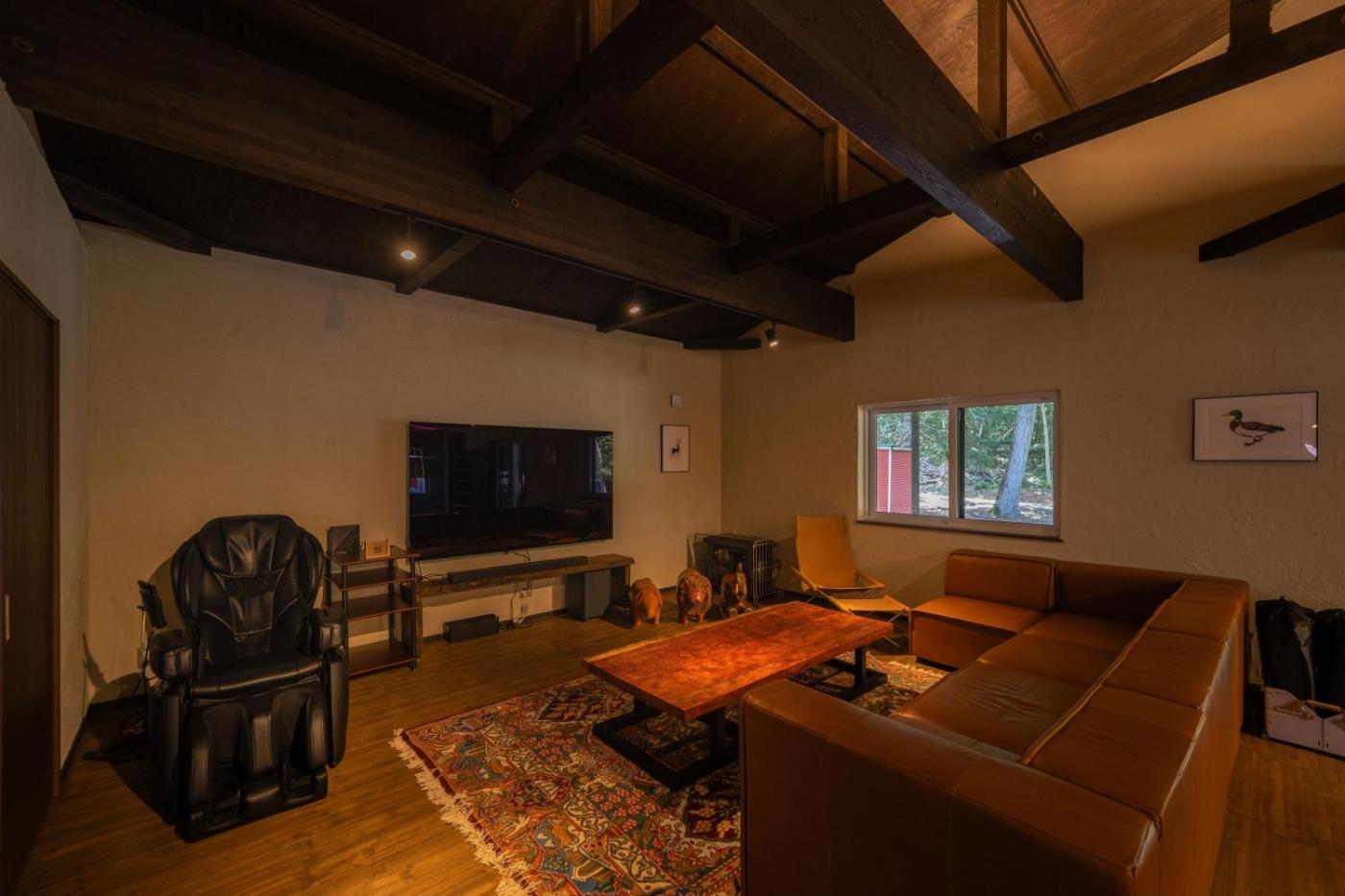 Three-Bedroom Villa. This villa boasts a hot tub, private open-air bath and sauna. Featuring a private entrance, this air-conditioned villa consists of a kitchenette, 3 bedrooms and 3 bathrooms with a shower and a hairdryer. Guests can make meals in the kitchenette that is equipped with a refrigerator, an oven, a microwave and a toaster. The villa provides a dining area, an electric kettle, heating, a flat-screen TV with streaming services, as well as lake views. The unit offers 6 beds.