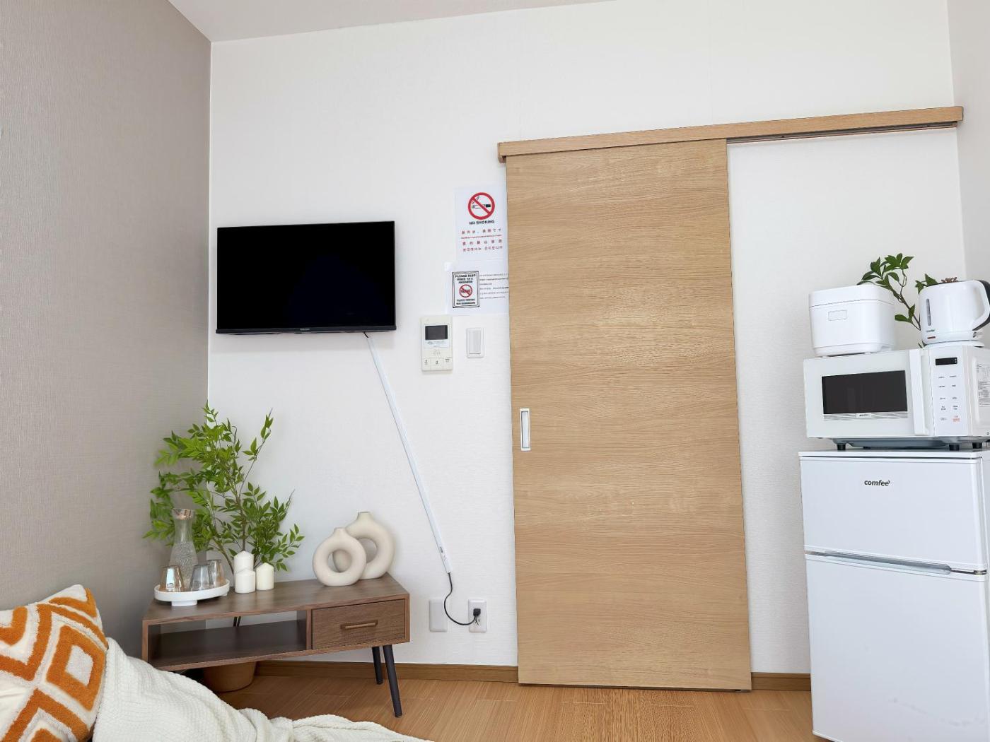 One-Bedroom Apartment. Featuring a private entrance, this air-conditioned apartment consists of a kitchen, 1 bedroom and 1 bathroom with a walk-in shower and a hairdryer. The fully equipped kitchen has a stovetop, a refrigerator, kitchenware and a microwave. This apartment features a washing machine, tatami, a flat-screen TV and a balcony. The unit offers 2 futons.