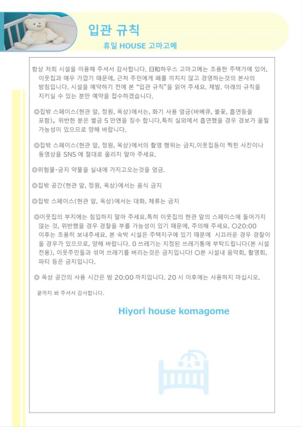 Three-Bedroom House. The hot tub is the standout feature of this holiday home. Boasting a private entrance, this air-conditioned holiday home features 1 living room, 3 separate bedrooms and 1 bathroom with a bath and a shower. Meals can be prepared in the well-fitted kitchen, which features a stovetop, a refrigerator, kitchenware and a microwave. There is a washing machine, tatami and a balcony and complimentary chocolate is available for guests. The unit has 4 beds and 2 futons.