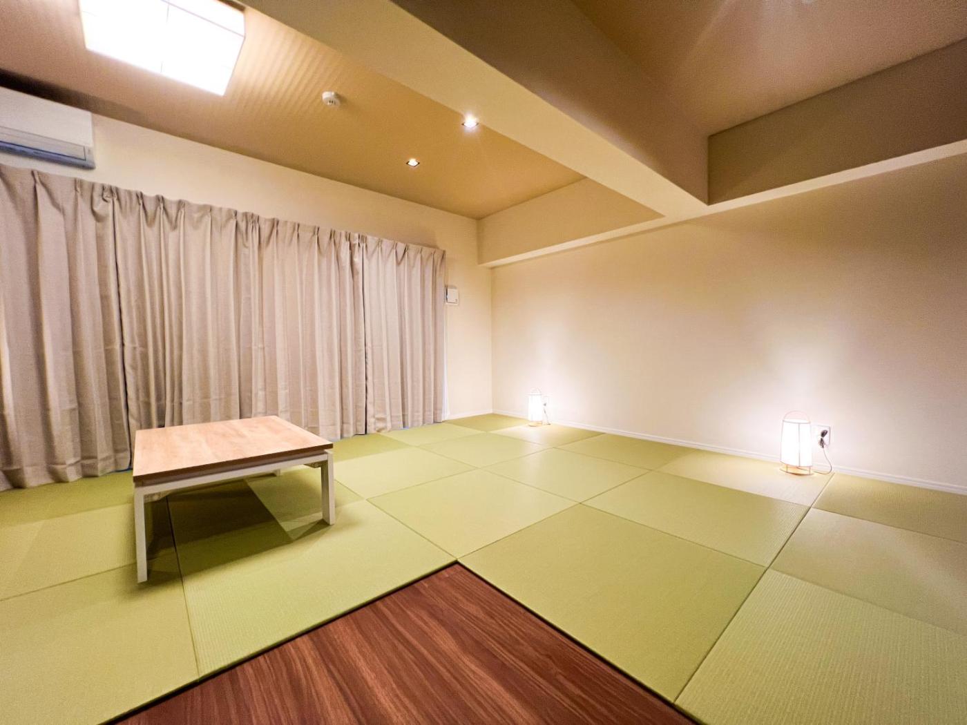 Apartment with Balcony. The air-conditioned apartment features 1 bedroom and 1 bathroom with a bath and a shower. Guests can make meals in the kitchen that is equipped with a stovetop, a refrigerator, kitchenware and a microwave. The apartment has tatami floors, a seating area with a flat-screen TV, a washing machine, a wardrobe, as well as an electric kettle. The unit offers 6 futons. ;