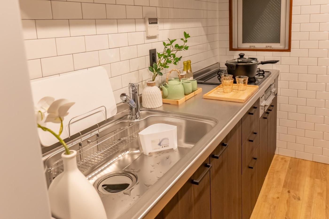 Two-Bedroom Apartment. This apartment includes 1 living room, 2 separate bedrooms and 1 bathroom with a bath and free toiletries. The fully equipped kitchen has a stovetop, a refrigerator, kitchenware and a microwave. The air-conditioned apartment offers a TV, a washing machine, tatami, a dining area as well as a quiet street view. The unit has 1 bed and 4 futons.