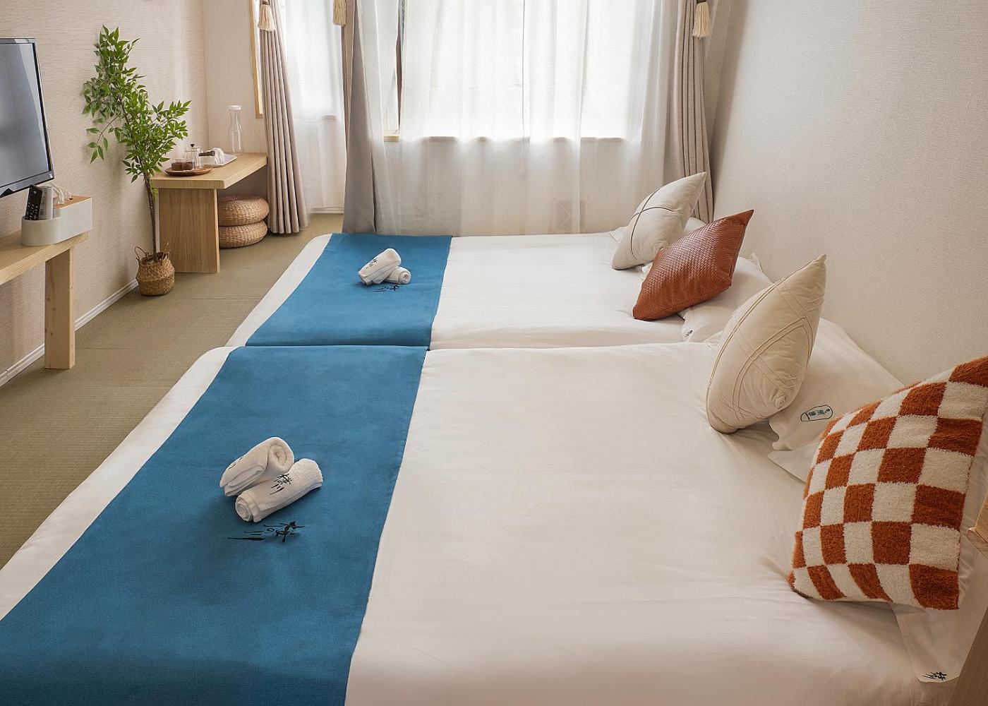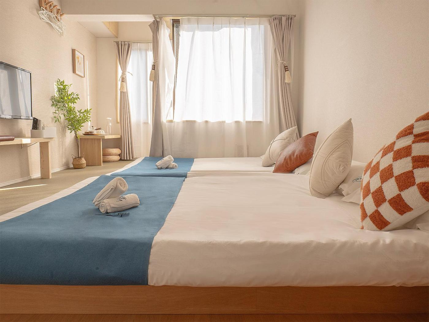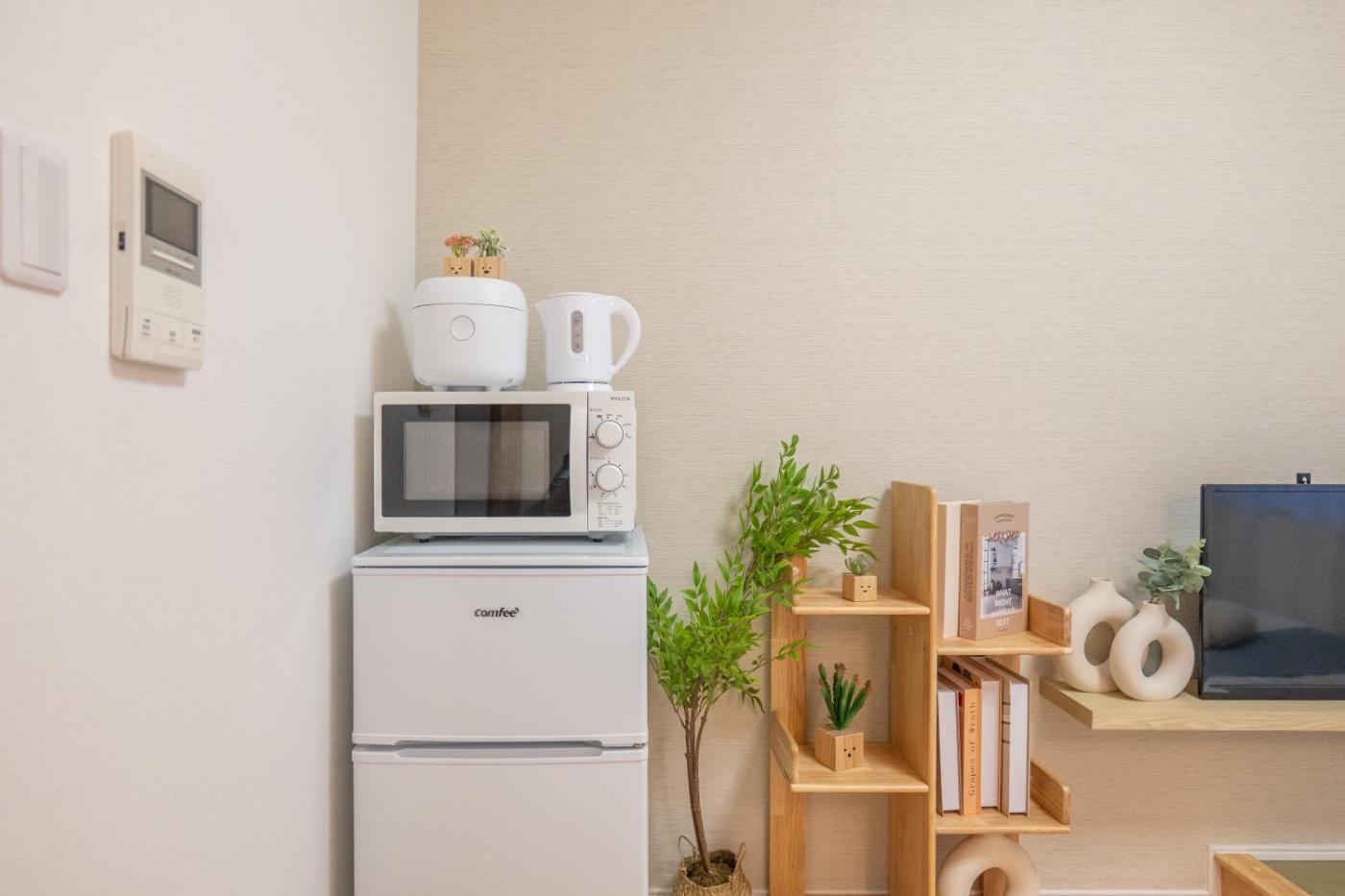 One-Bedroom Apartment. The air-conditioned apartment features 1 bedroom and 1 bathroom with a shower and a hairdryer. Meals can be prepared in the well-fitted kitchen, which is equipped with a refrigerator, kitchenware and a microwave. The apartment provides a TV, a washing machine, tatami, an electric kettle as well as a quiet street view. The unit offers 2 beds.
