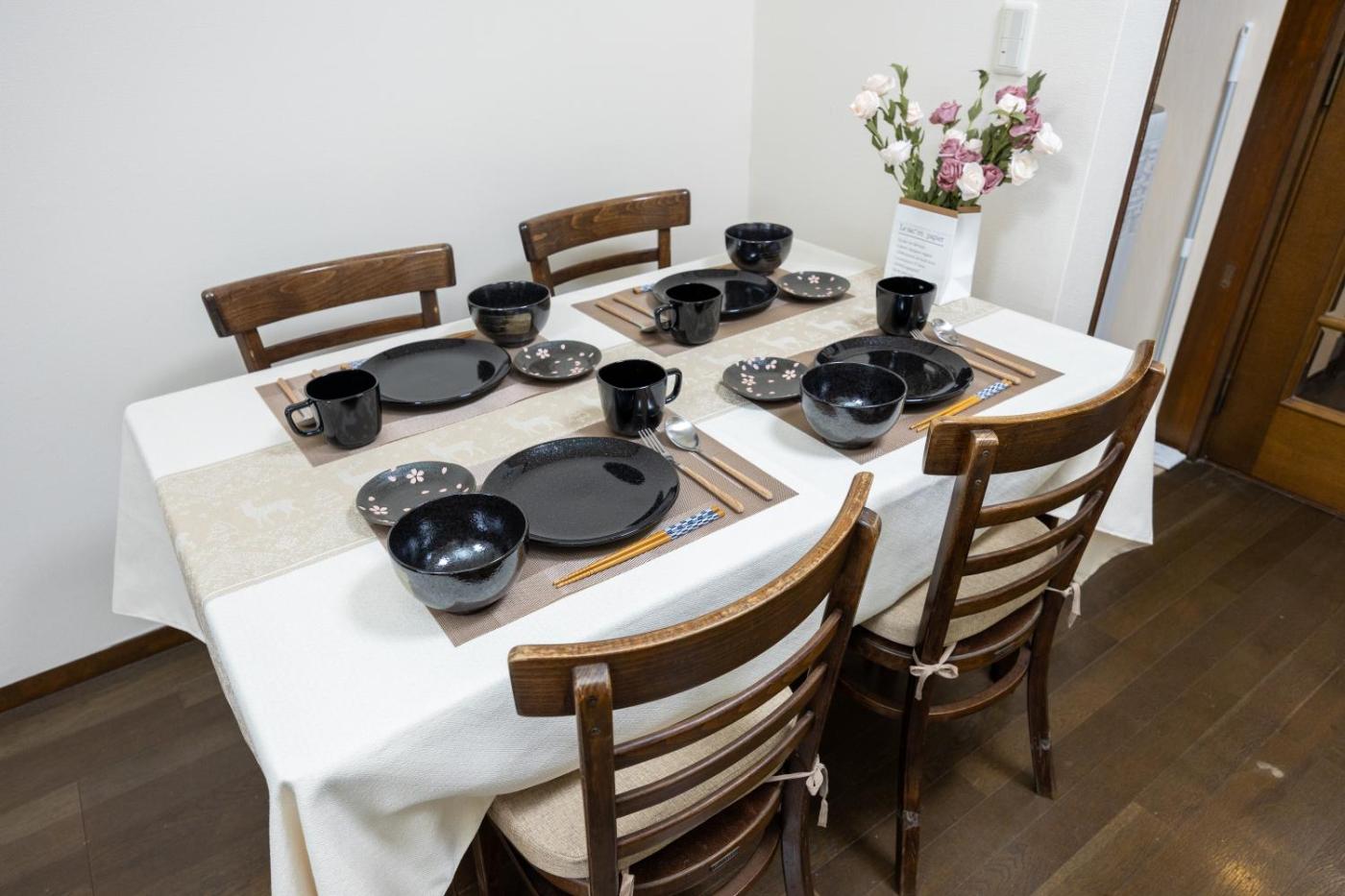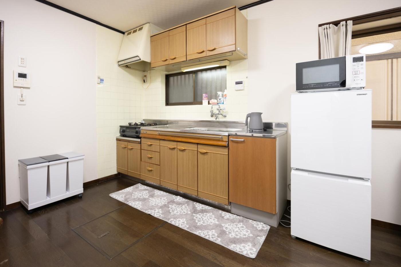 Three-Bedroom Apartment. This spacious apartment includes 1 living room, 3 separate bedrooms and 1 bathroom with a bath and free toiletries. In the well-fitted kitchen, guests will find a stovetop, a refrigerator, kitchenware and a microwave. The apartment offers air conditioning, a washing machine, tatami, as well as a balcony. The unit has 3 beds and 3 futons.