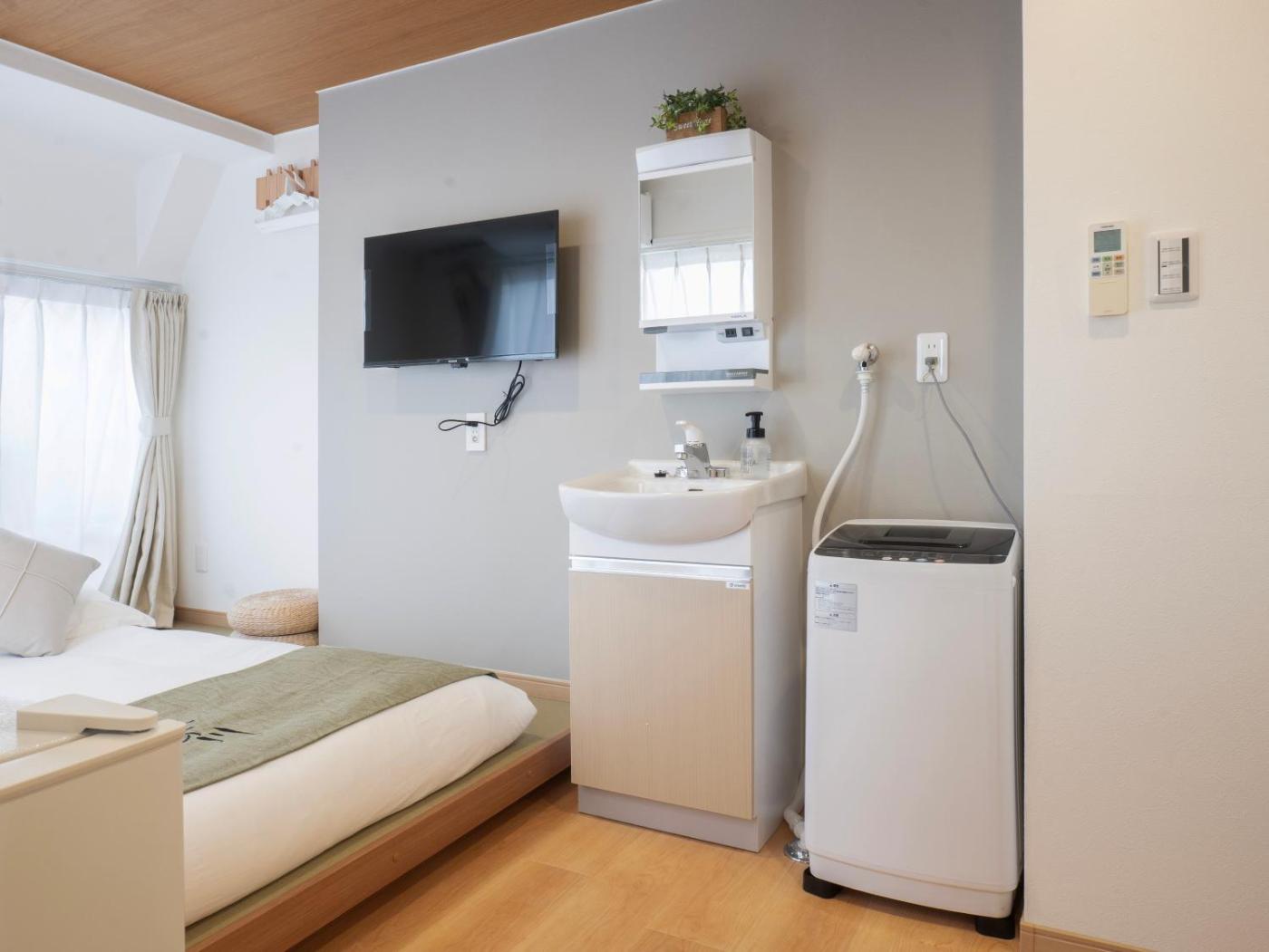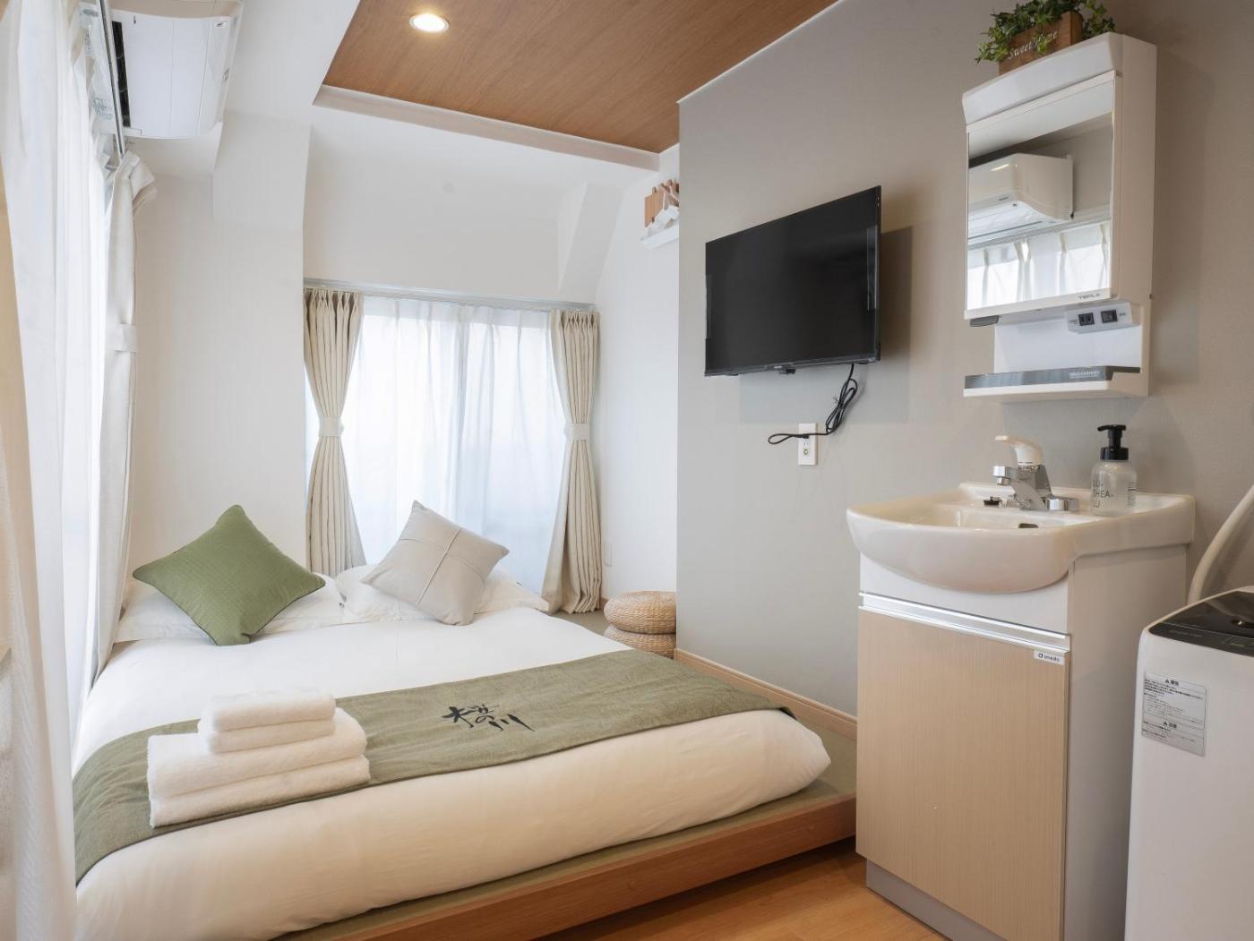 One-Bedroom Apartment. The air-conditioned apartment has 1 bedroom and 1 bathroom with a shower and a hairdryer. Meals can be prepared in the well-fitted kitchen, which has a stovetop, a refrigerator, kitchenware and a microwave. The apartment features a flat-screen TV, a washing machine, tatami, an electric kettle as well as city views. The unit has 1 futon.