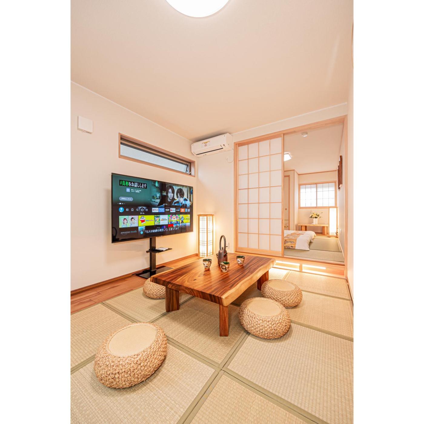 Three-Bedroom Home. Featuring a private entrance, this air-conditioned holiday home is comprised of 1 living room, 3 separate bedrooms and 2 bathrooms with a bath and a shower. The well-fitted kitchen features a refrigerator, kitchenware, a microwave and a tea and coffee maker. Boasting a balcony, this holiday home also offers a washing machine, tatami and a flat-screen TV with streaming services. The unit offers 8 futons.