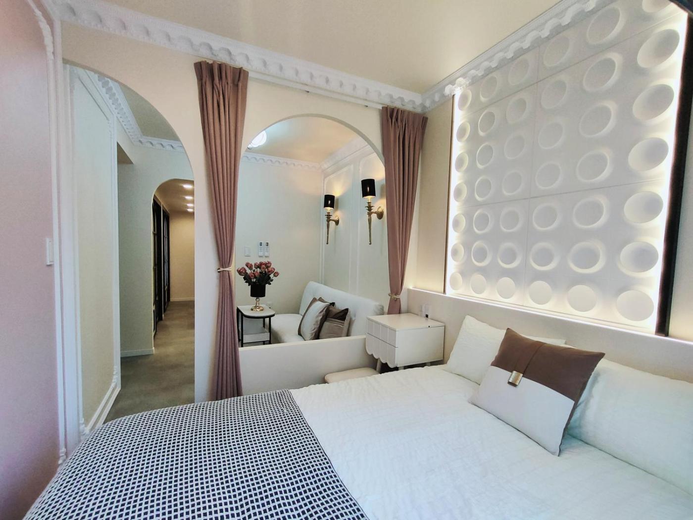 Two-Bedroom Apartment with Balcony. Boasting a private entrance, this air-conditioned apartment comes with 1 living room, 2 separate bedrooms and 1 bathroom with a shower and a hairdryer. Guests can make meals in the kitchen that features a stovetop, a refrigerator, kitchenware and a microwave. The apartment features a washing machine, tatami, as well as a terrace and a balcony. The unit has 3 beds.