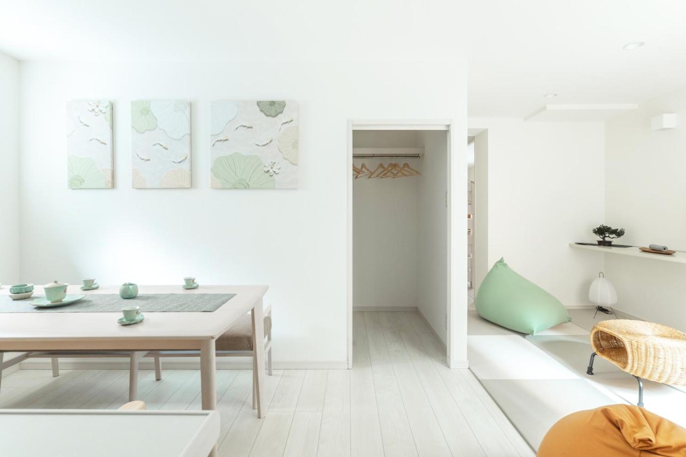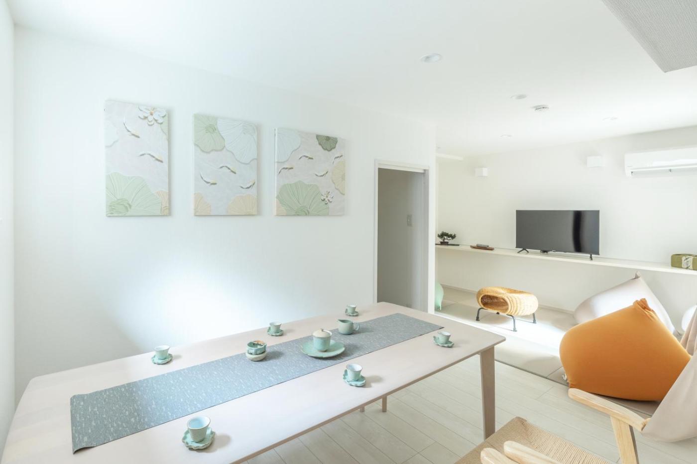 One-Bedroom Apartment - Non-Smoking. The hot tub is a top feature of this apartment. This apartment comes with 1 living room, 1 separate bedroom and 1 bathroom with a bath and free toiletries. Meals can be prepared in the well-fitted kitchen, which features a stovetop, a refrigerator, kitchenware and an oven. This apartment is air-conditioned and has a seating area with a flat-screen TV, a washing machine, tatami, a tea and coffee maker, as well as a dining area. The unit has 3 beds.