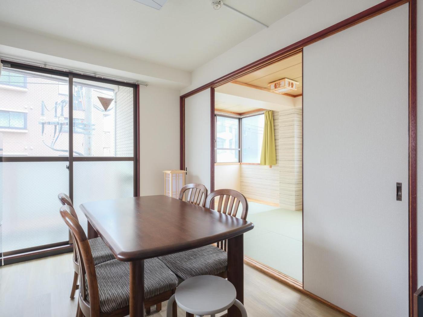 Two-Bedroom Apartment. This air-conditioned apartment comes with 1 living room, 2 separate bedrooms and 1 bathroom with a bath. In the kitchen, guests will find a stovetop, a refrigerator, kitchenware and a microwave. The apartment features a washing machine, tatami, a dining area, as well as a balcony. The unit has 7 futons.