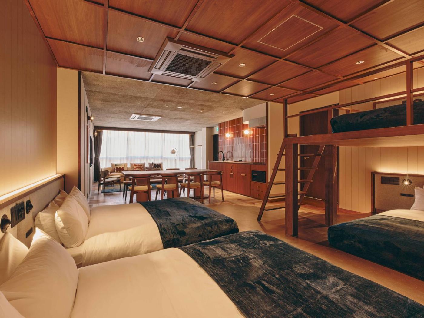 Deluxe Suite. This spacious suite comprises 1 living room, 1 separate bedroom and 1 bathroom with a shower and free toiletries. Meals can be prepared in the kitchen, which comes with a stovetop, a refrigerator and a microwave. The air-conditioned suite provides a flat-screen TV with streaming services, a washing machine, a tea and coffee maker, a dining area as well as city views. The unit offers 4 beds. ;