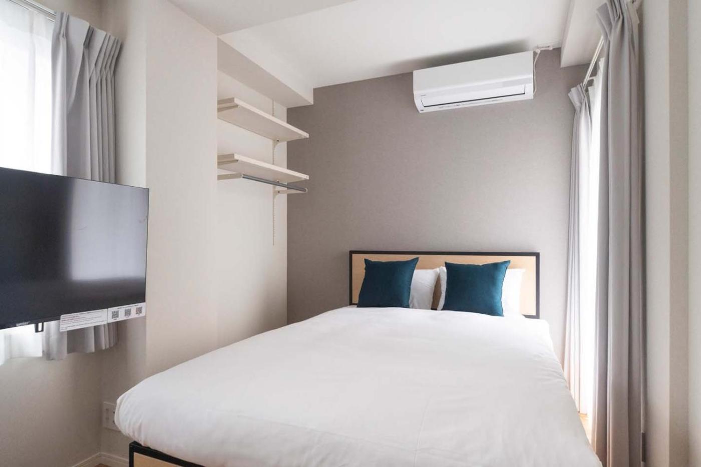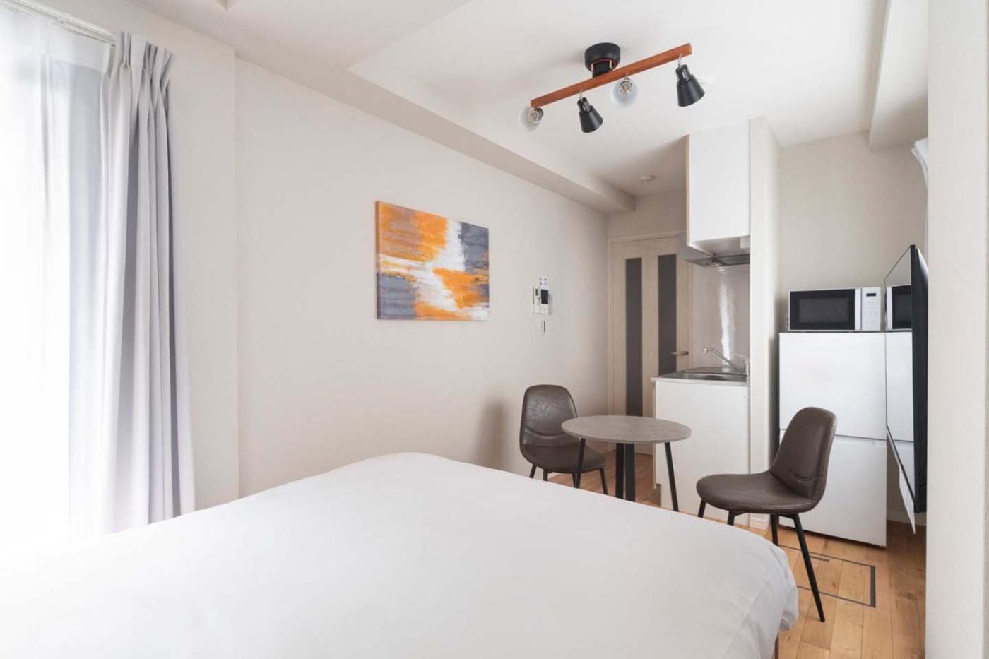 One-Bedroom Apartment. The air-conditioned apartment features 1 bedroom and 1 bathroom with a bath and a shower. Meals can be prepared in the kitchen, which is equipped with a stovetop, a refrigerator, kitchenware and a microwave. The apartment provides a washing machine, an electric kettle, heating along with a balcony. The unit offers 1 bed. ;