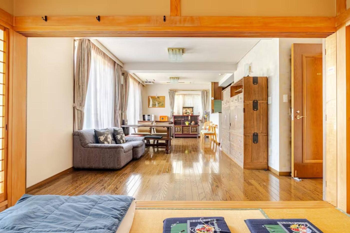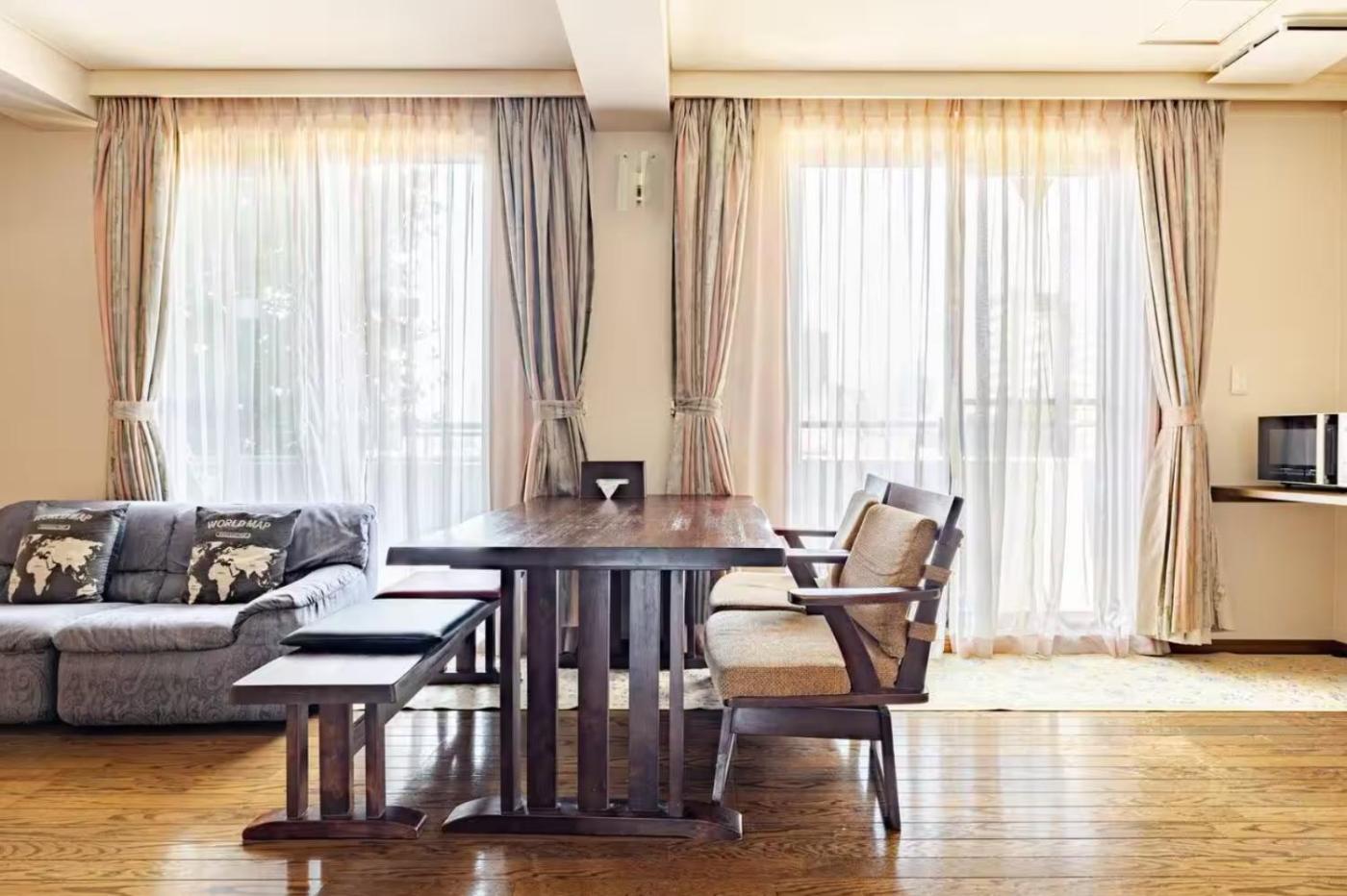 Superior Suite. This spacious suite comes with a kitchen, a seating area, 2 separate bedrooms and 1 bathroom with a bath and a shower. Guests can make meals in the kitchen that features a refrigerator, a dishwasher, kitchenware and a microwave. The air-conditioned suite features a flat-screen TV, a washing machine, tatami, a dining area as well as ancourtyard view. The unit has 2 beds and 3 futons. ;