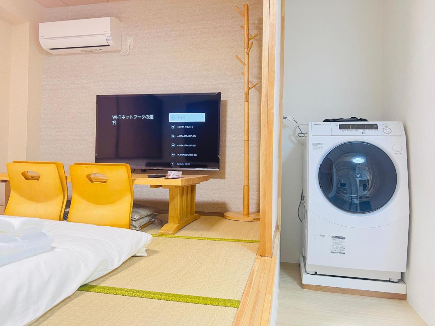 Apartment. The spacious apartment has 4 bedrooms and 1 bathroom with a walk-in shower and free toiletries. In the well-equipped kitchen, guests will find a stovetop, a refrigerator, kitchenware and a microwave. The apartment offers air conditioning, a washing machine, tatami, a dining area, as well as a TV. The unit has 8 futons.