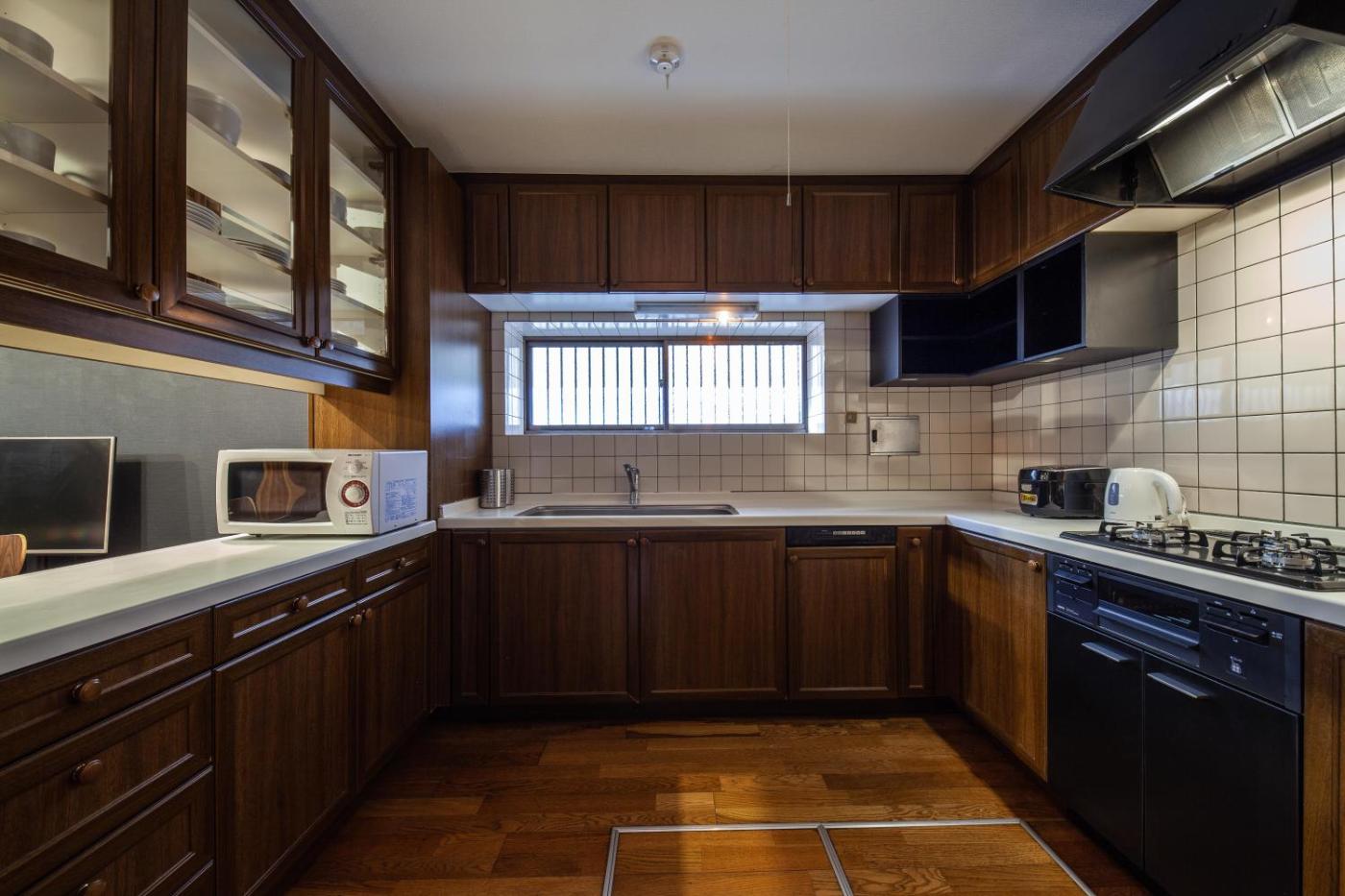 Apartment. Boasting a private entrance, this air-conditioned apartment comes with 1 living room, 4 separate bedrooms and 1 bathroom with a bath and a shower. Guests can make meals in the kitchen that features a stovetop, a refrigerator, kitchenware and a microwave. The spacious apartment features a flat-screen TV, a washing machine, tatami, a dining area as well as a quiet street view. The unit has 6 beds and 3 futons.