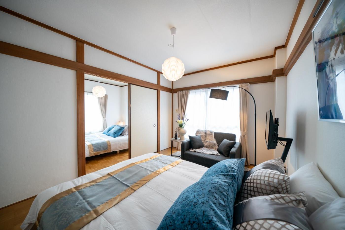Two-Bedroom Apartment. This apartment includes 1 living room, 2 separate bedrooms and 1 bathroom with a bath and free toiletries. In the kitchen, guests will find a stovetop, a refrigerator, kitchenware and a microwave. This apartment has air conditioning, a washing machine, a flat-screen TV and a balcony. The unit has 2 beds.