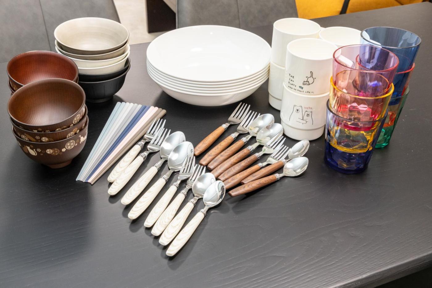 Three-Bedroom Apartment. This spacious apartment comes with 1 living room, 3 separate bedrooms and 1 bathroom with a bath and a shower. Guests can make meals in the kitchen that features a refrigerator, kitchenware and a microwave. The air-conditioned apartment features a flat-screen TV with streaming services, a washing machine, an electric kettle, a sofa as well as a quiet street view. The unit has 4 beds and 2 futons.