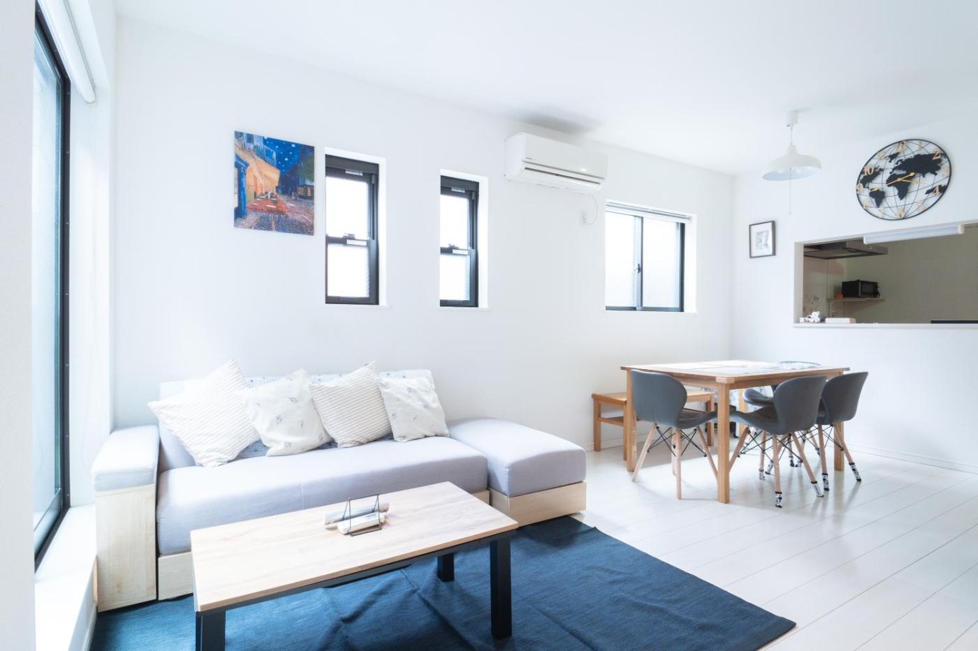 One-Bedroom Apartment. This spacious apartment consists of 1 living room, 1 separate bedroom and 1 bathroom with a bath and free toiletries. In the well-equipped kitchen, guests will find a stovetop, a refrigerator, kitchenware and a microwave. The air-conditioned apartment provides a flat-screen TV, a washing machine, tatami, a safe deposit box as well as a quiet street view. The unit offers 7 beds.