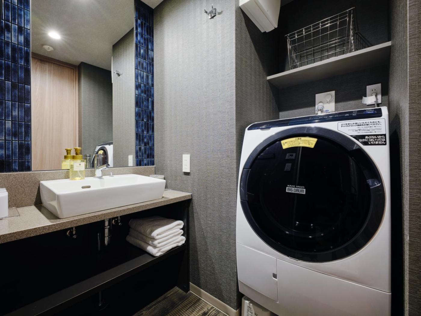 Deluxe Japanese King Room with Washing Machine. The double room includes a private bathroom, well-fitted with a bath, a shower, a bidet, a hairdryer and slippers. The fully equipped kitchen has a stovetop, a refrigerator, kitchenware and a microwave. The spacious double room features air conditioning, a washing machine, tatami, a dining area and a flat-screen TV with streaming services. The unit has 1 bed. ;