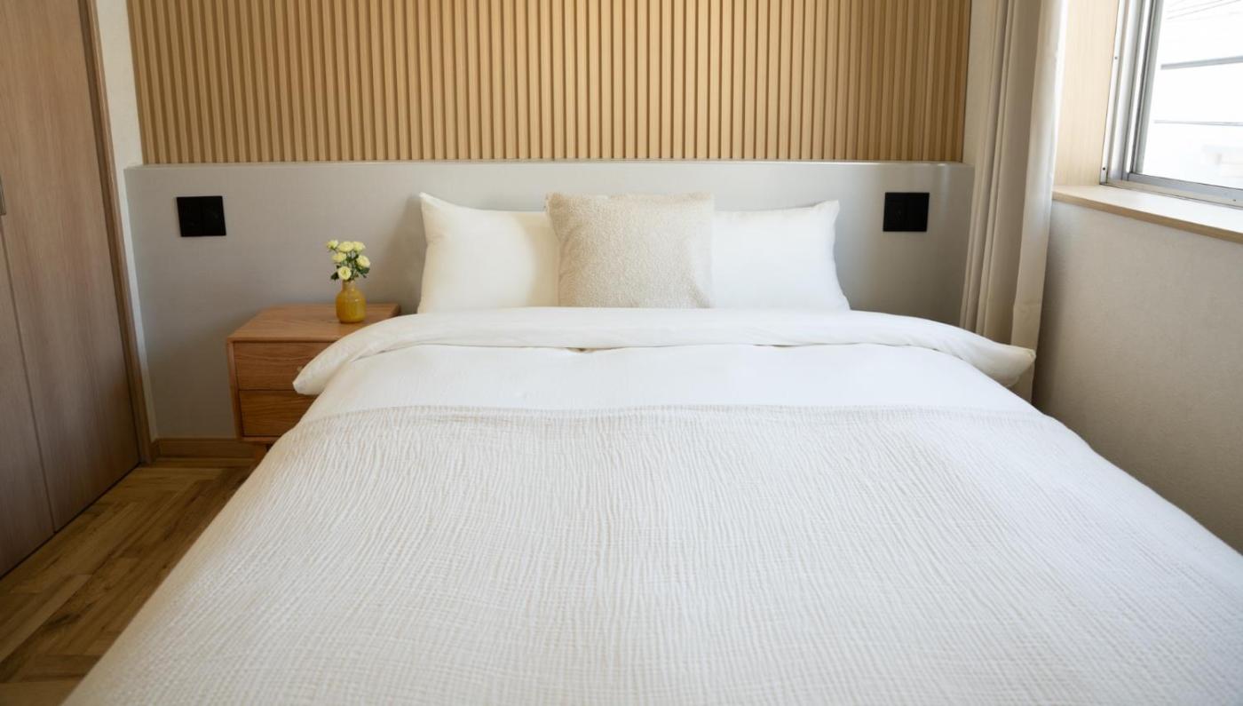 Two-Bedroom Apartment. Guests will have a special experience as the apartment provides a hot tub. This apartment comprises 1 living room, 2 separate bedrooms and 1 bathroom with a bath and free toiletries. The apartments kitchen is available for cooking and storing food. The apartment comes with tatami floors, a sofa, air conditioning, a washing machine as well as city views. The unit offers 1 bed and 1 futon.