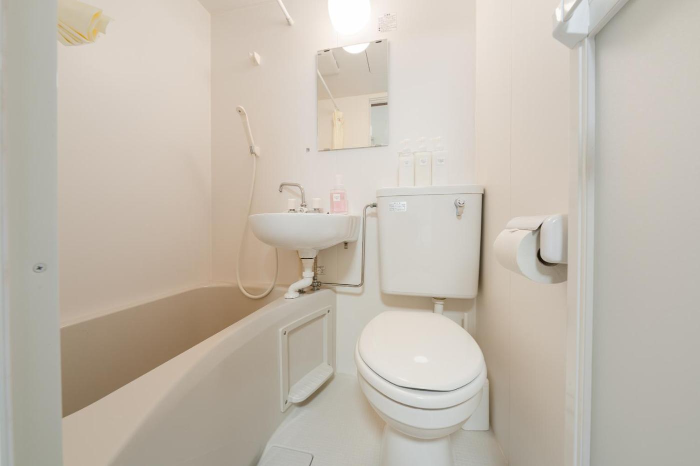 Triple Room with Bath. Providing free toiletries, this triple room includes a private bathroom with a bath, a shower and a hairdryer. Guests can make meals in the kitchenette that is equipped with a refrigerator, kitchenware, a microwave and an electric kettle. The triple room provides air conditioning. The unit offers 3 beds. ;
