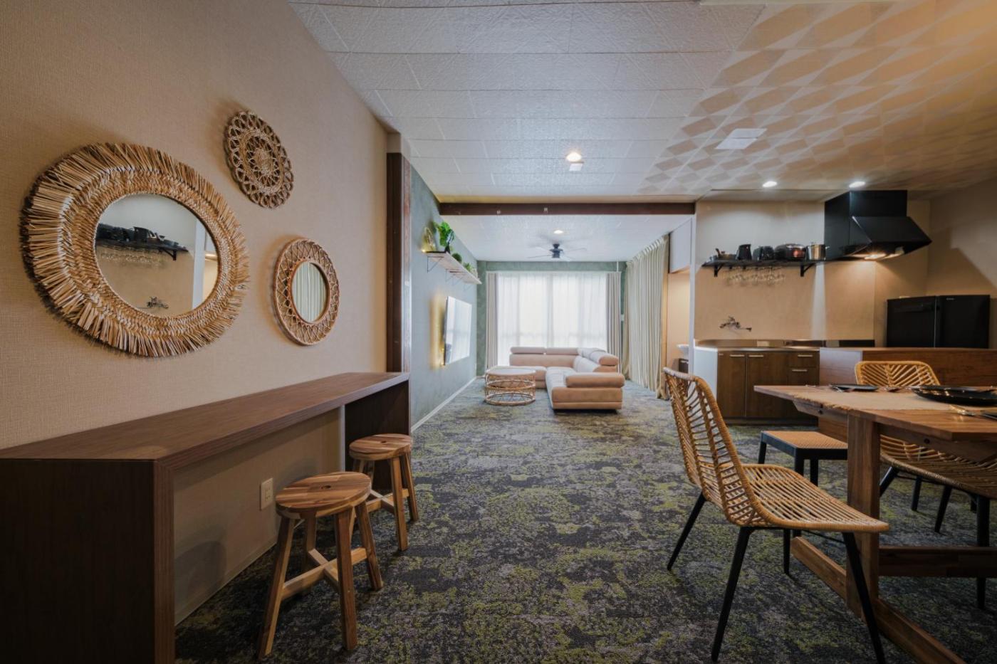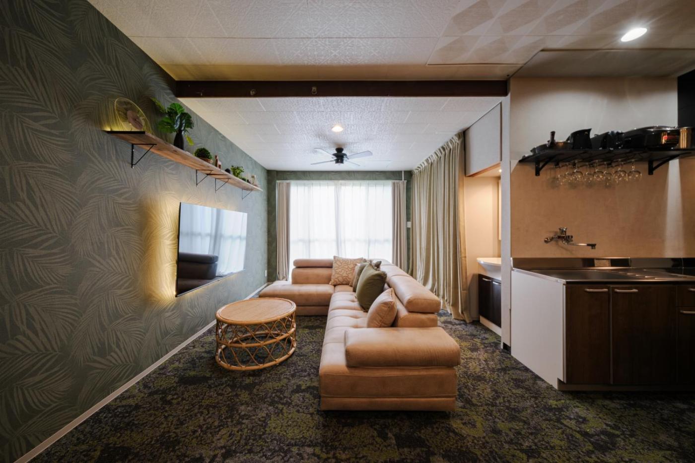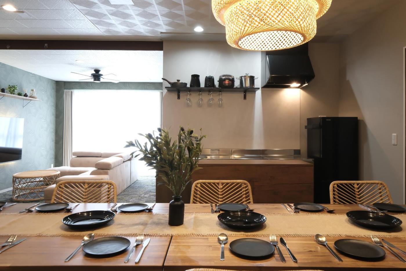 Four-Bedroom Deluxe Apartment. The hot tub is a top feature of this apartment. Boasting a private entrance, this air-conditioned apartment comes with 1 living room, 4 separate bedrooms and 3 bathrooms with a bath and a shower. Meals can be prepared in the kitchen, which features a stovetop, a refrigerator, kitchenware and a microwave. The spacious apartment features a washing machine, soundproof walls, a dining area, an electric kettle, as well as a flat-screen TV with streaming services. The unit has 12 beds.