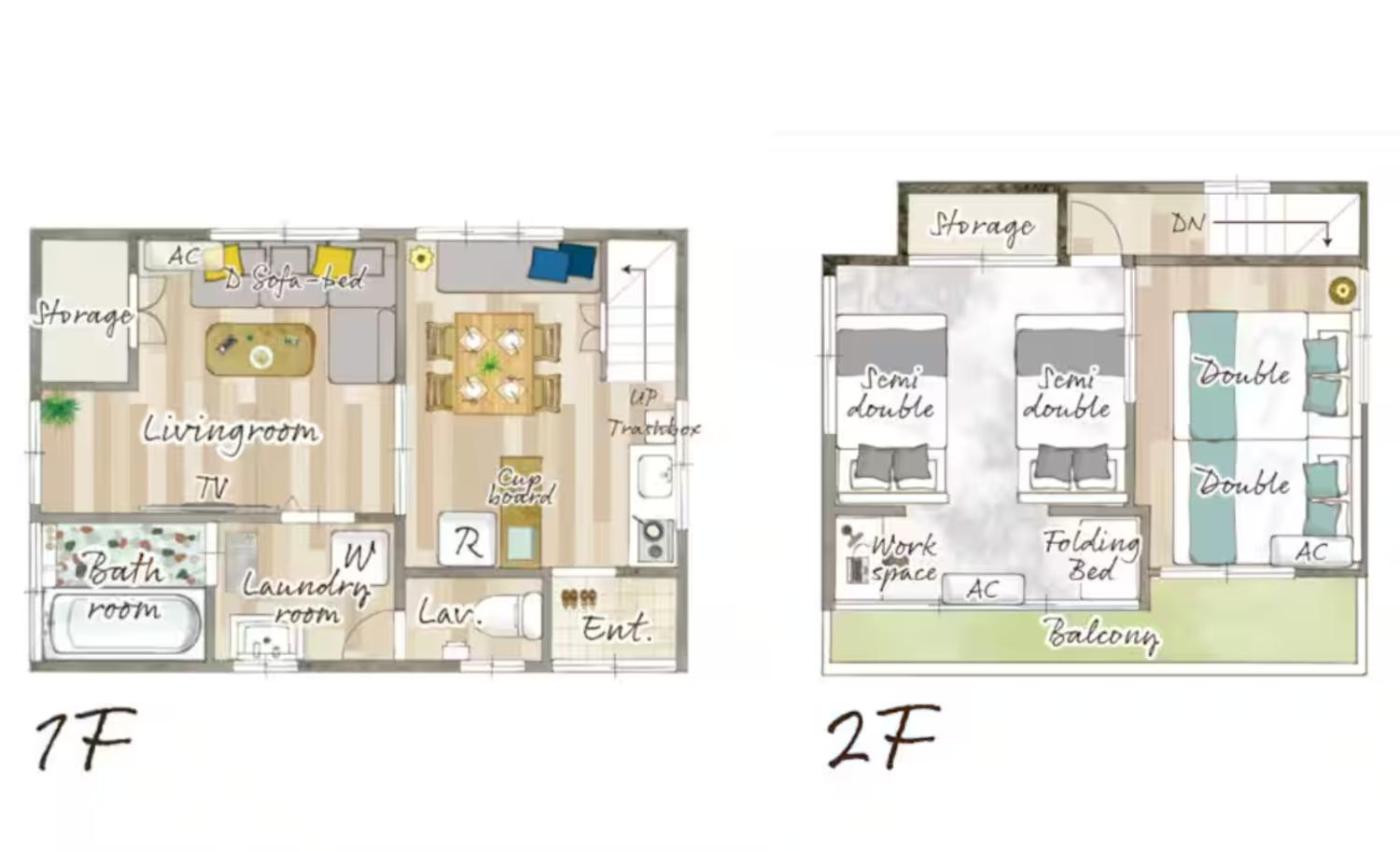 Two-Bedroom House. This holiday home features 1 living room, 1 separate bedroom and 1 bathroom with a bath and free toiletries. The well-equipped kitchen features a stovetop, a refrigerator, a microwave and an electric kettle. This holiday home has air conditioning, a washing machine, a flat-screen TV and a balcony. The unit has 3 beds.
