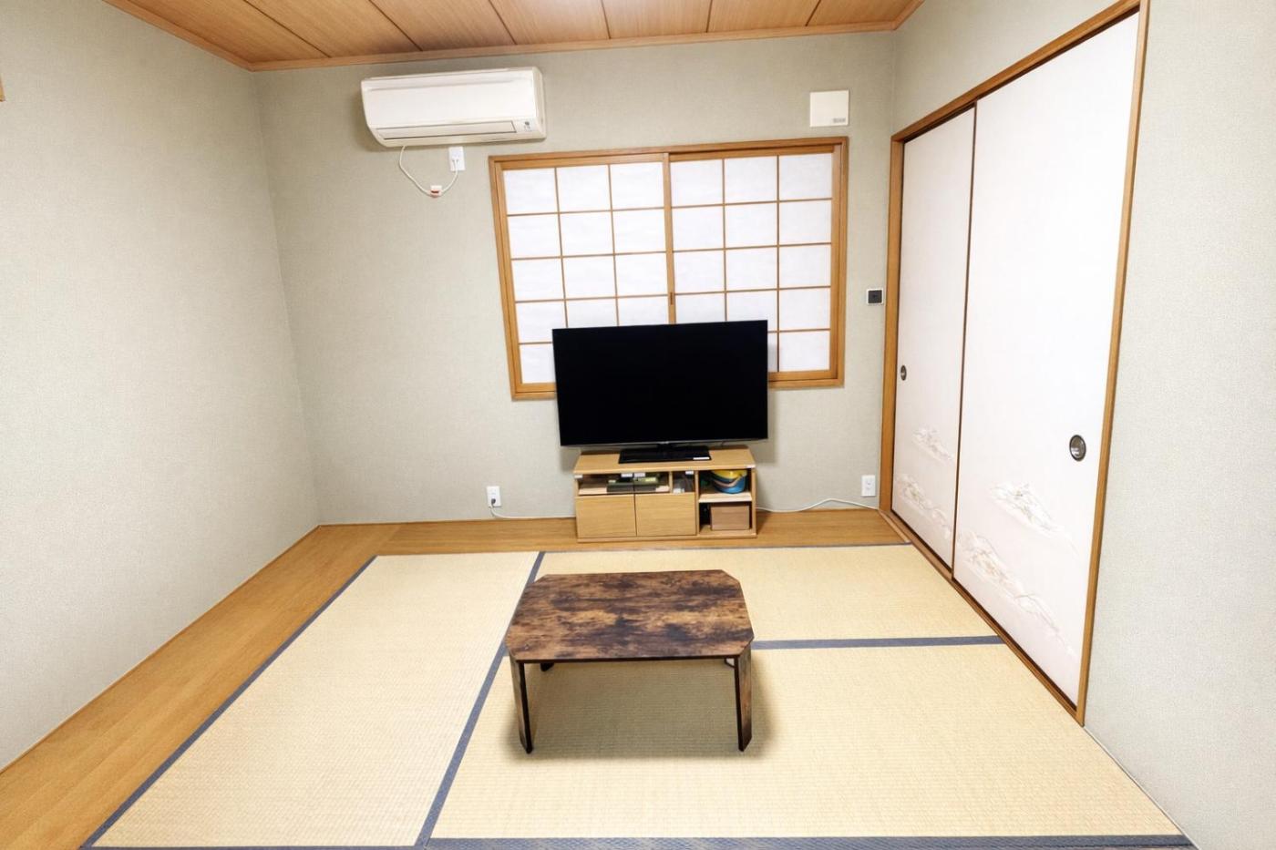 Three-Bedroom House. Boasting a private entrance, this air-conditioned holiday home comes with 1 living room, 3 separate bedrooms and 1 bathroom with a bath and a shower. The fully equipped kitchen has a stovetop, a refrigerator, kitchenware and a microwave. The holiday home features a washing machine, tatami, soundproof walls, a flat-screen TV, as well as a quiet street view. The unit has 5 beds and 3 futons.