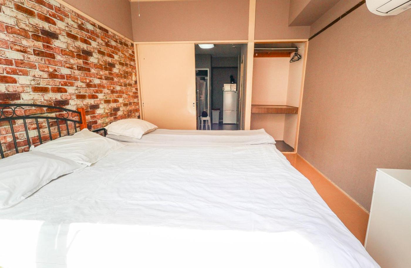 Two-Bedroom Apartment. Featuring a private entrance, this air-conditioned apartment is comprised of a kitchen, 2 bedrooms and 1 bathroom with a bath and a shower. The well-fitted kitchen features a stovetop, a refrigerator, kitchenware and a microwave. Boasting a balcony with city views, this apartment also offers a washing machine and a flat-screen TV. The unit offers 4 beds.