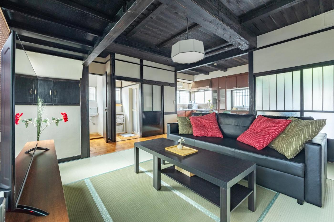Villa. Boasting a private entrance, this air-conditioned villa includes 1 living room, 4 separate bedrooms and 1 bathroom with a bath and a shower. In the fully equipped kitchen, guests will find a stovetop, a refrigerator, kitchenware and an oven. The villa offers a flat-screen TV with streaming services, a washing machine, tatami, a tea and coffee maker as well as garden views. The unit has 6 beds and 4 futons.