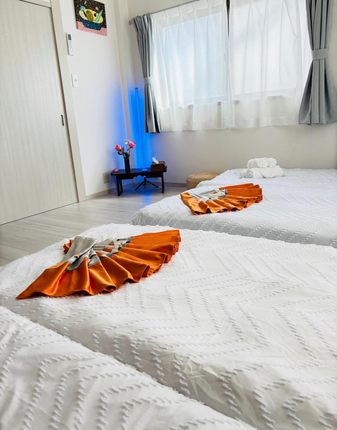Holiday Home. This holiday home comprises 1 living room, 2 separate bedrooms and 1 bathroom with a bath and free toiletries. Meals can be prepared in the well-fitted kitchen, which comes with a stovetop, a refrigerator, kitchenware and an oven. This holiday home is air-conditioned and features a washing machine, tatami as well as a terrace with city views. The unit offers 3 beds and 4 futons.