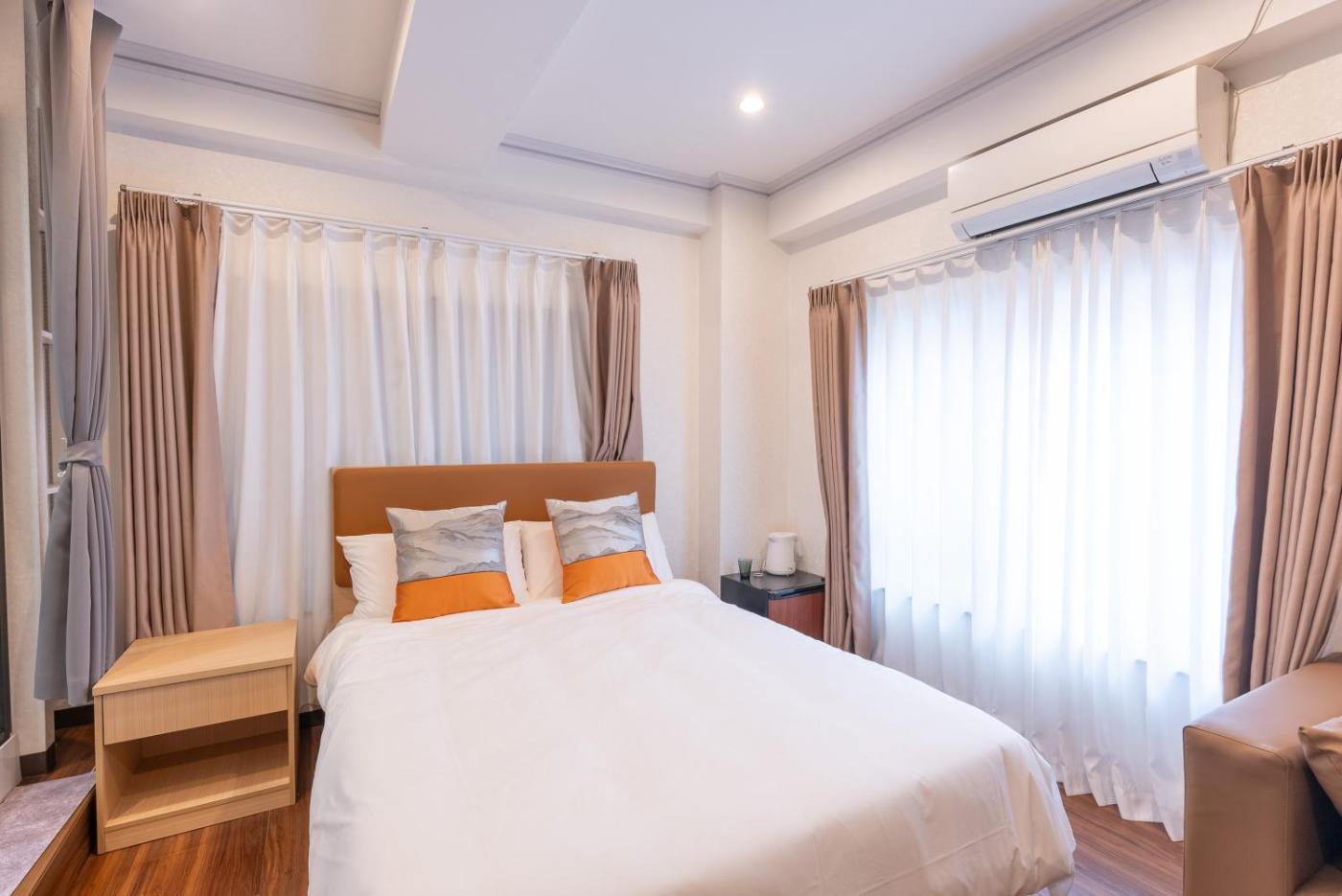 Deluxe Twin Room. The twin room includes a private bathroom, well-fitted with a bath, a shower, a bidet, a hairdryer and slippers. The spacious twin room features air conditioning, a washing machine, a tea and coffee maker, a wardrobe and a flat-screen TV with streaming services. The unit has 2 beds.