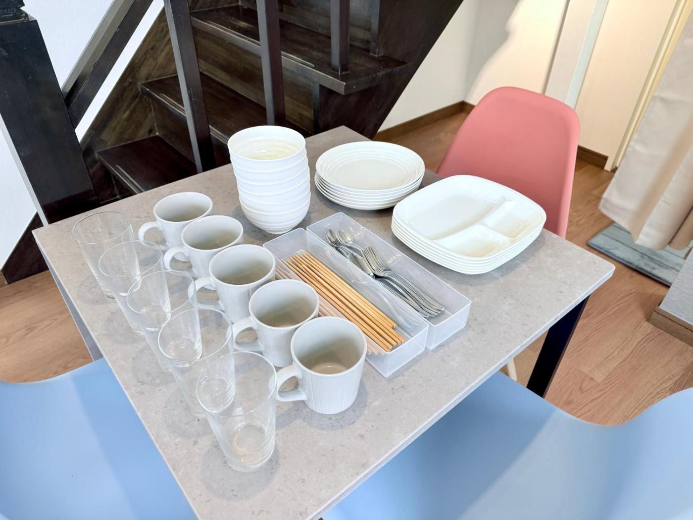 Two-Bedroom Apartment. Featuring a private entrance, this air-conditioned apartment comprises 1 living room, 2 separate bedrooms and 1 bathroom with a bath and a shower. Meals can be prepared in the kitchen, which comes with a stovetop, a refrigerator, kitchenware and a microwave. The apartment provides a washing machine, a dining area, an electric kettle, a dressing room, as well as a flat-screen TV with streaming services. The unit offers 5 beds.