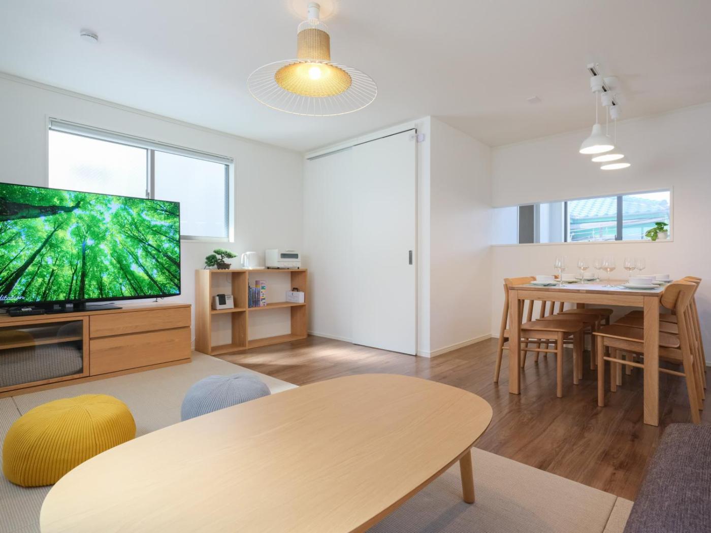 Four-Bedroom House. Guests will have a special experience as this holiday home features a hot tub. Featuring a private entrance, this air-conditioned holiday home comprises a kitchen, 4 bedrooms and 1 bathroom with a bath and a shower. The well-equipped kitchen features a stovetop, a refrigerator, kitchenware and a microwave. The holiday home provides a flat-screen TV with streaming services, a washing machine, tatami, a dining area as well as city views. The unit offers 3 beds and 2 futons.