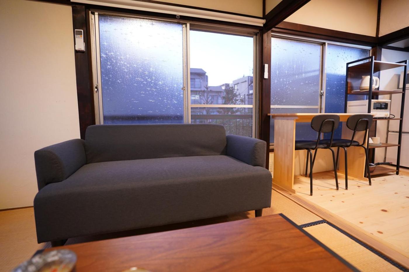 One-Bedroom Apartment. The air-conditioned apartment has 1 bedroom and 1 bathroom with a shower and a bidet. The well-equipped kitchen features a stovetop, a refrigerator, a microwave and a tea and coffee maker. The apartment features a washing machine, tatami, a dining area as well as a sofa. The unit has 2 futons.