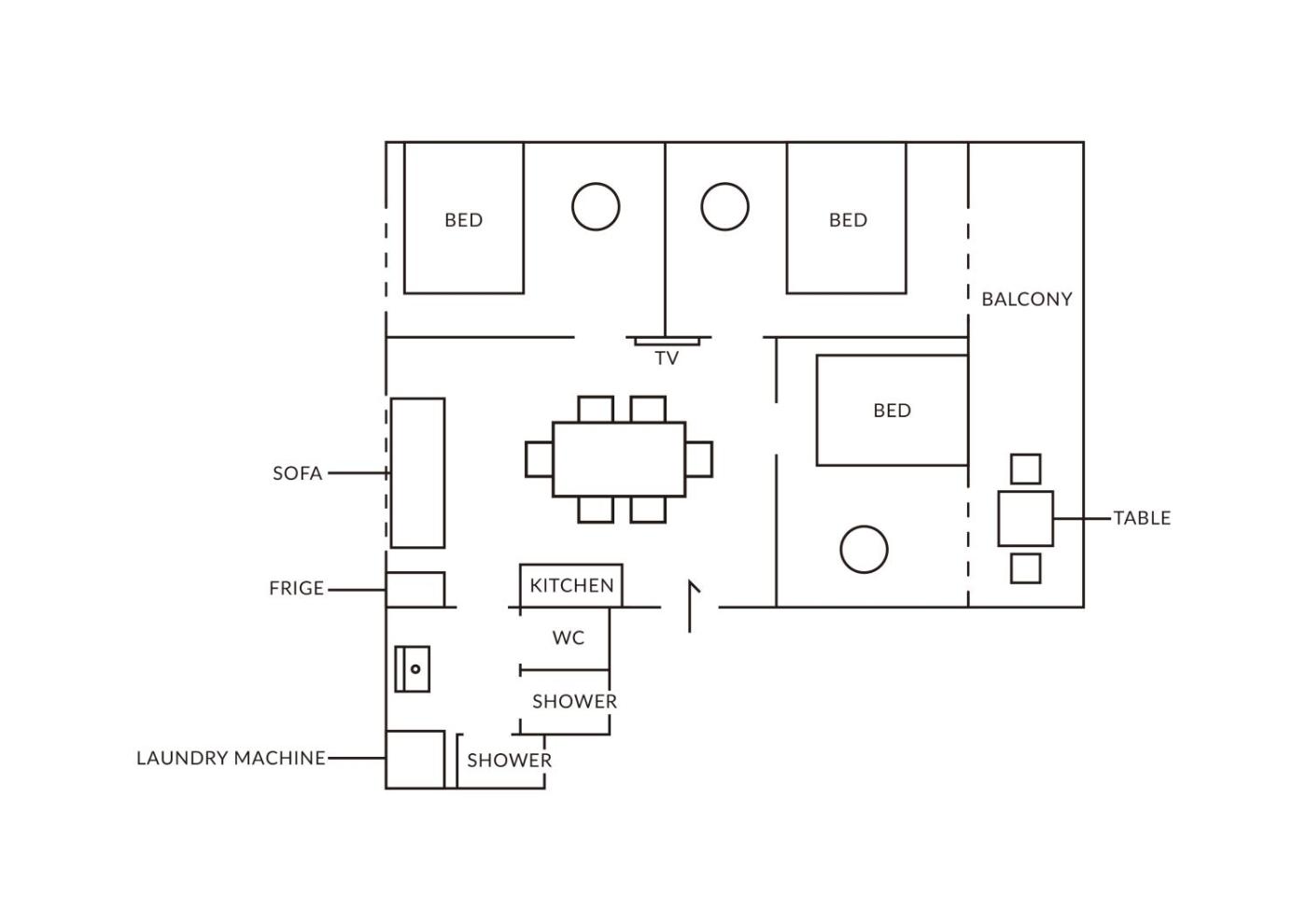 Three-Bedroom Apartment. Boasting a private entrance, this spacious apartment also comes with 3 separate bedrooms and 1 bathroom with a bath and a shower. The fully equipped kitchen features a refrigerator, kitchenware, a microwave and an electric kettle. This apartment has air conditioning, a washing machine, a flat-screen TV and a terrace. The unit has 6 beds.