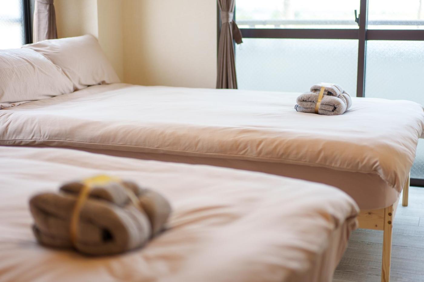 Two-Bedroom Apartment. This apartment boasts a hot tub. The air-conditioned apartment features 2 bedrooms and 1 bathroom with a bath and a shower. In the fully equipped kitchen, guests will find a stovetop, a refrigerator, kitchenware and a microwave. The apartment offers a washing machine, tatami, a dining area, a flat-screen TV, as well as river views. The unit offers 2 beds and 2 futons.