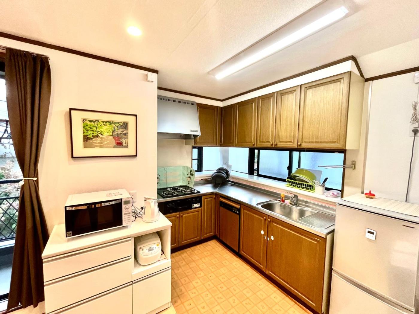 Villa. Guests will have a special experience as this villa features a hot tub. Featuring a private entrance, this air-conditioned villa is comprised of 1 living room, 4 separate bedrooms and 1 bathroom with a bath and a shower. The fully equipped kitchen features a stovetop, a refrigerator, a dishwasher and kitchenware. The villa offers a flat-screen TV with streaming services, a washing machine, tatami, soundproof walls as well as city views. The unit offers 3 beds and 8 futons.