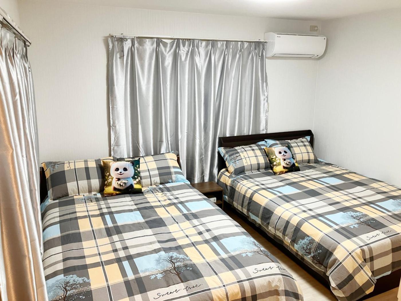 One-Bedroom House. This holiday home is comprised of 1 living room, 1 separate bedroom and 1 bathroom with a bath and free toiletries. Guests can make meals in the kitchen that is fitted with a refrigerator, kitchenware, a microwave and an electric kettle. This holiday home features air conditioning, a washing machine, a flat-screen TV with streaming services and a balcony. The unit offers 3 beds and 1 futon.