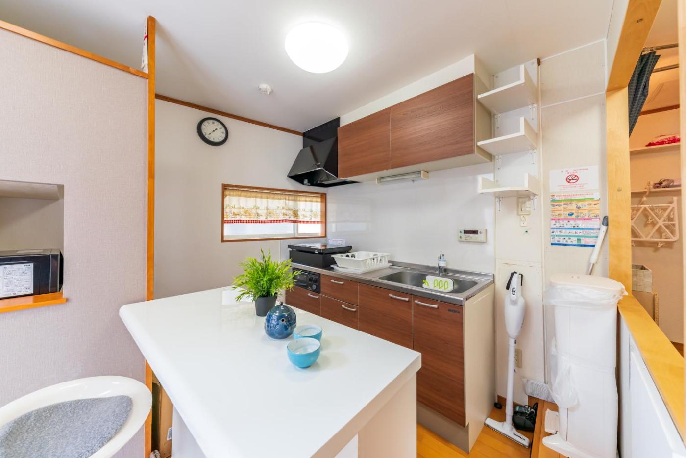 Two-Bedroom House. This holiday home includes 1 living room, 2 separate bedrooms and 1 bathroom with a bath and free toiletries. Guests can make meals in the kitchen that has a stovetop, kitchenware, a microwave and an electric kettle. The holiday home offers air conditioning, a washing machine, tatami, a safe deposit box, as well as a flat-screen TV. The unit has 4 futons.