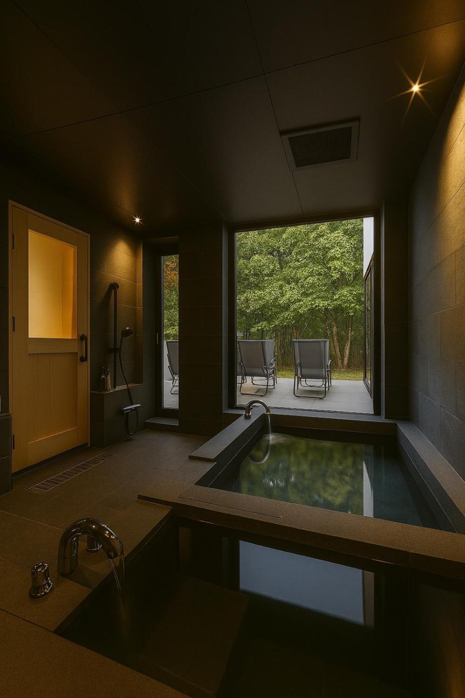 Villa. This luxurious villa has a hot tub, a private open-air bath and a sauna. This villa includes 1 living room, 3 separate bedrooms and 1 bathroom with a bath and free toiletries. Meals can be prepared in the well-fitted kitchen, which has a stovetop, a refrigerator, kitchenware and a microwave. The air-conditioned villa offers a flat-screen TV, a washing machine, a dining area, an electric kettle as well as garden views. The unit has 2 beds and 10 futons.