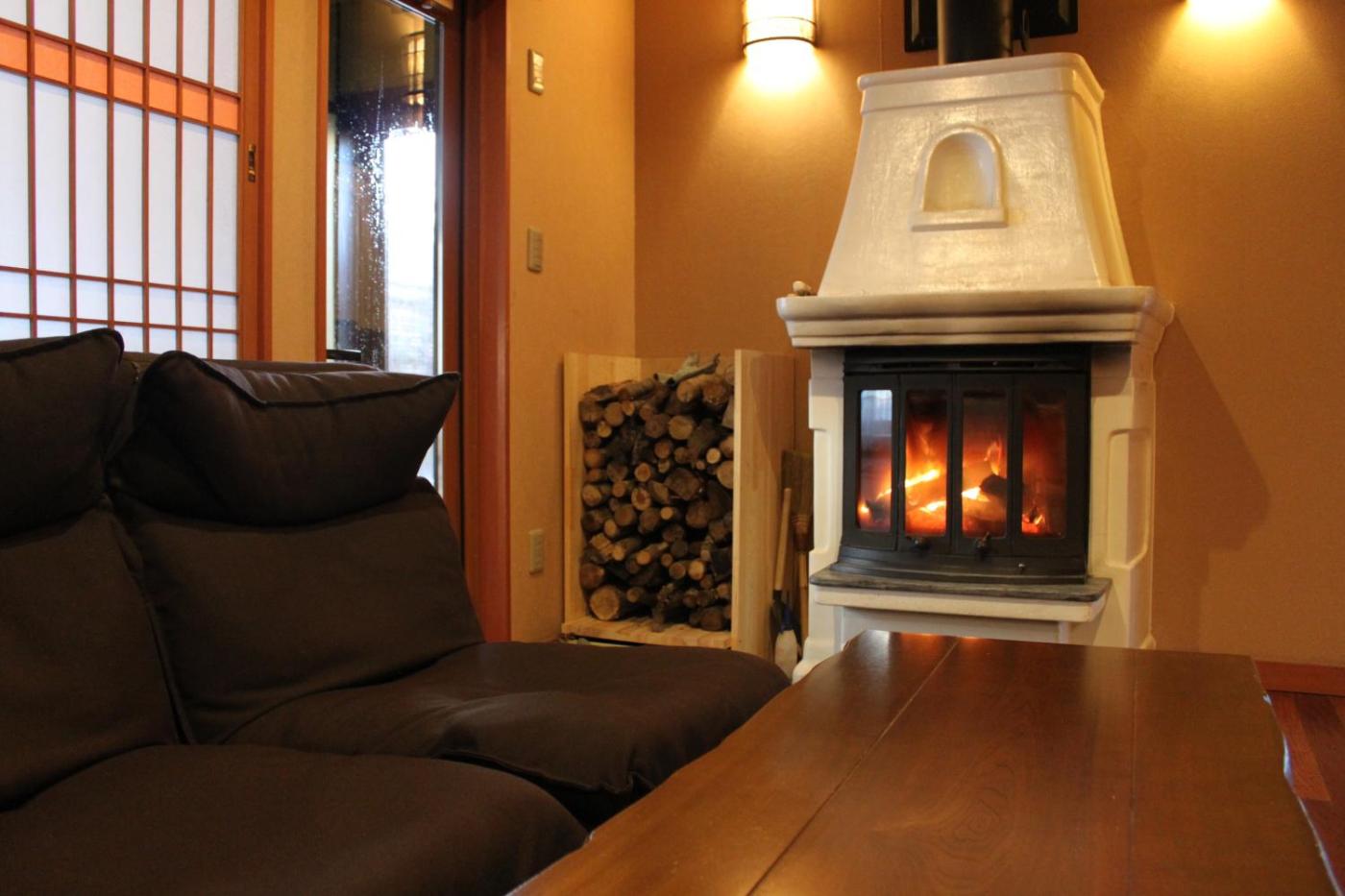 Superior Double Room with Tatami Area. This family room features a spa bath, electric kettle and air conditioning. The en suite hot spring bath features natural spring water. A fireplace is featured in the room, which is lit during the winter season. ;