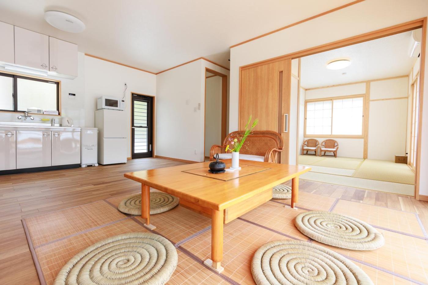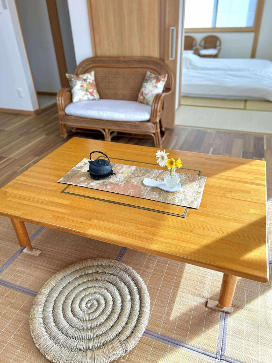 Family Room with Private Bathroom. The well-fitted kitchen features a refrigerator, kitchenware, a microwave and an electric kettle. The family room offers air conditioning, tatami, a balcony with mountain views as well as a private bathroom featuring a bath. The unit offers 3 futons.
