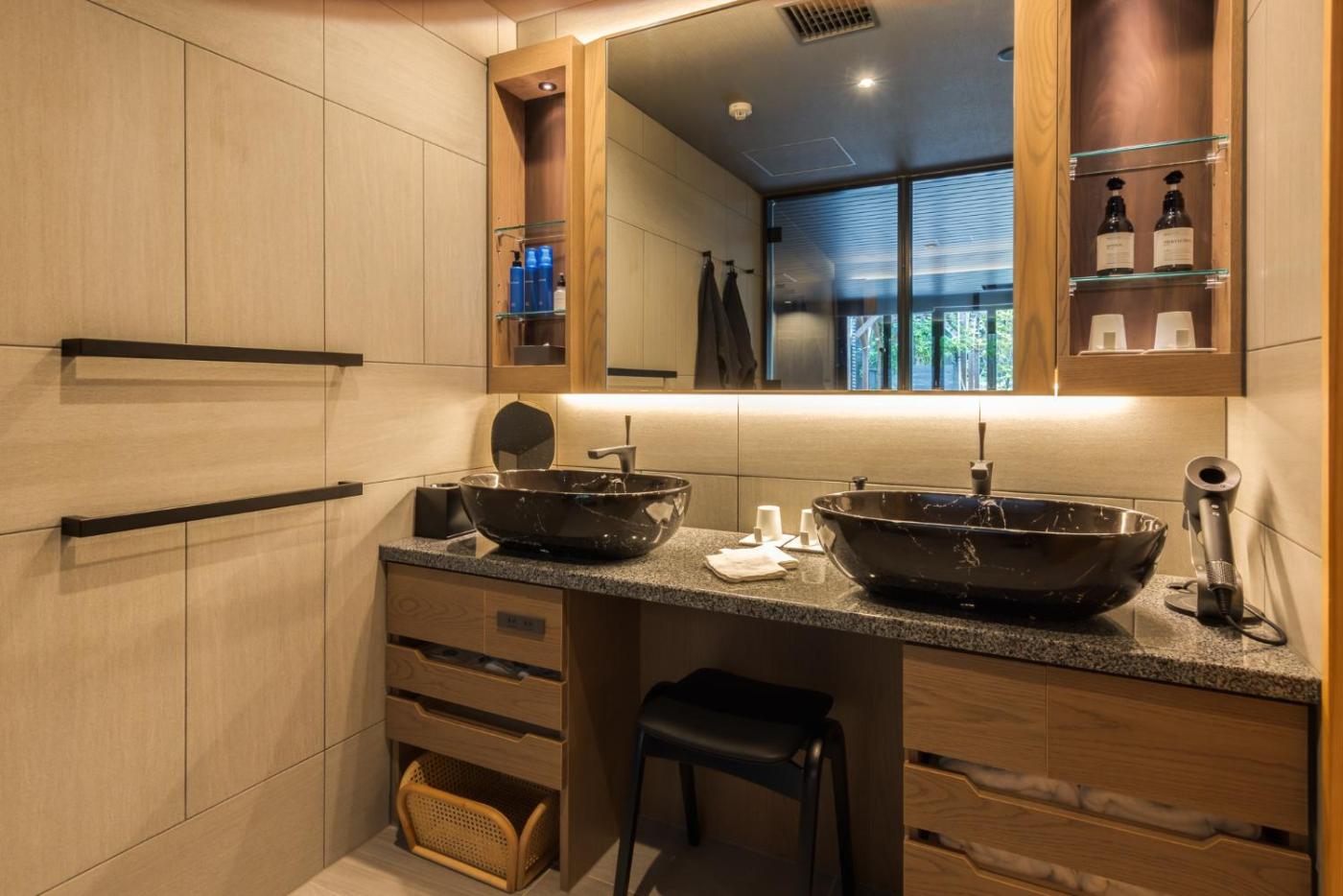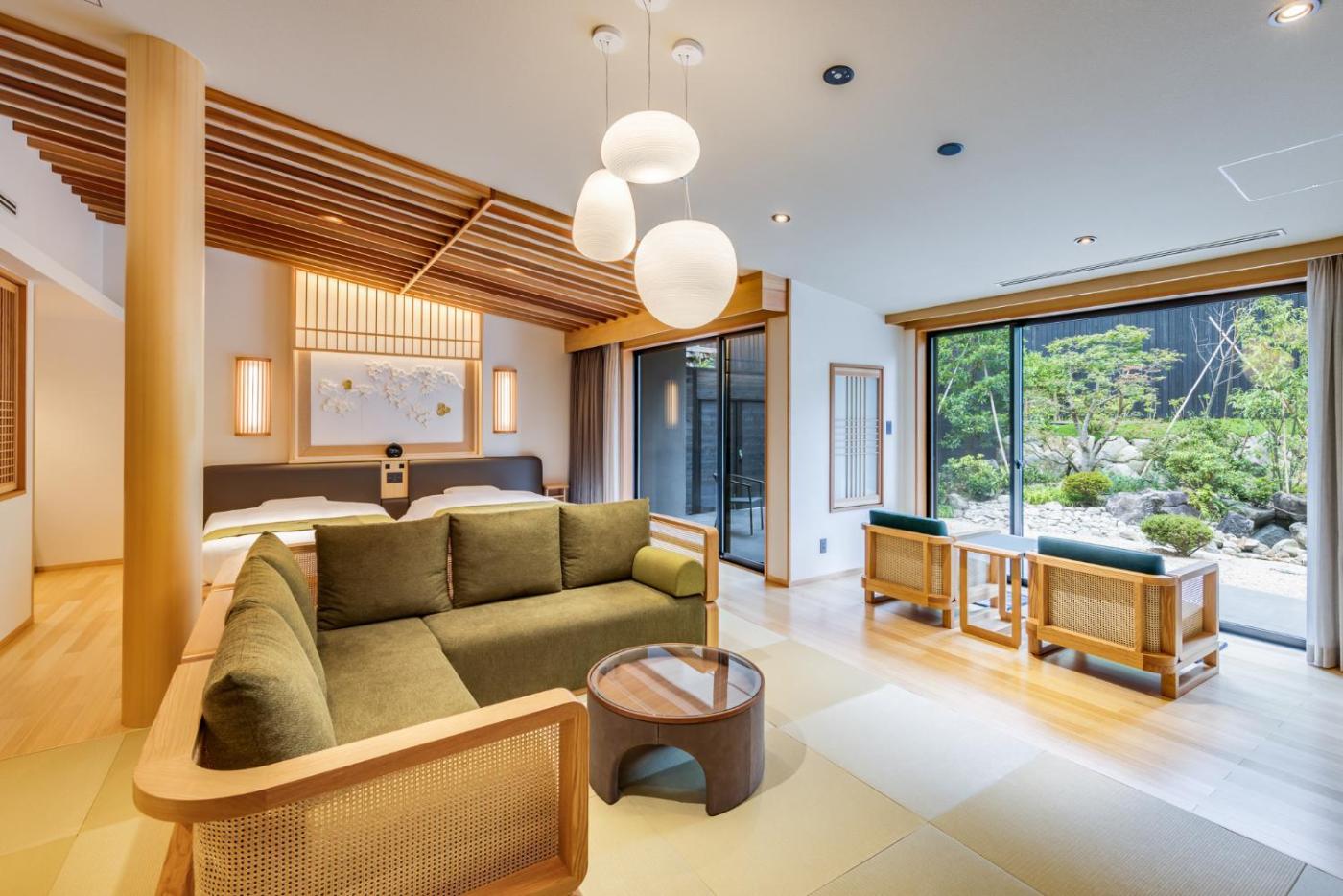 Premium Suite with Semi-Open-Air Bath. The private open-air bath is a top feature of this suite. This spacious suite comes with 1 living room, 1 separate bedroom and 1 bathroom with a bath and free toiletries. The air-conditioned suite features a flat-screen TV, tatami, a tea and coffee maker, a wardrobe as well as ancourtyard view. The unit has 2 beds and 2 futons. ;