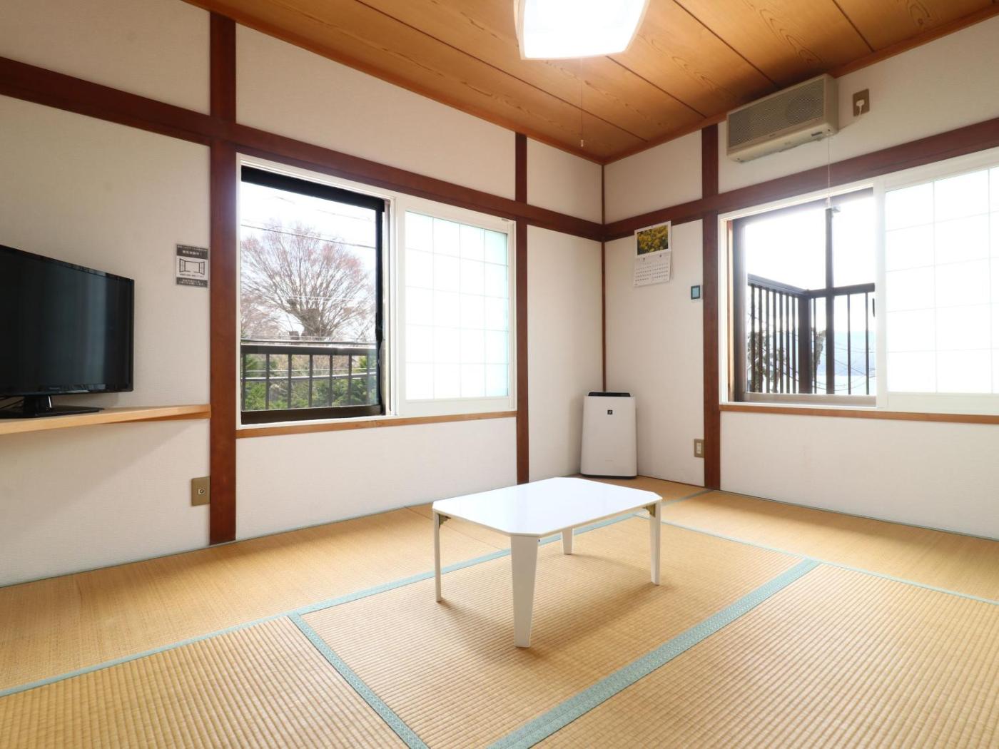Japanese-Style Room. Featuring free toiletries, this family room includes a shared bathroom with a bath, a shower and a bidet. The family room features air conditioning, tatami, a tea and coffee maker, a barbecue, as well as a TV. The unit has 2 futons.